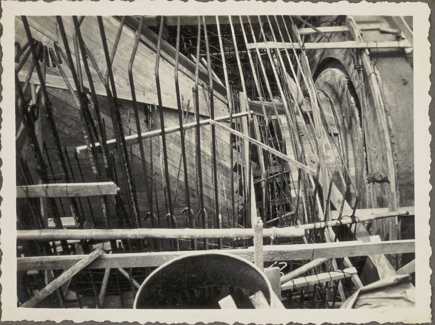 De Javaanse arbeiders brengen de bekisting aan van h...