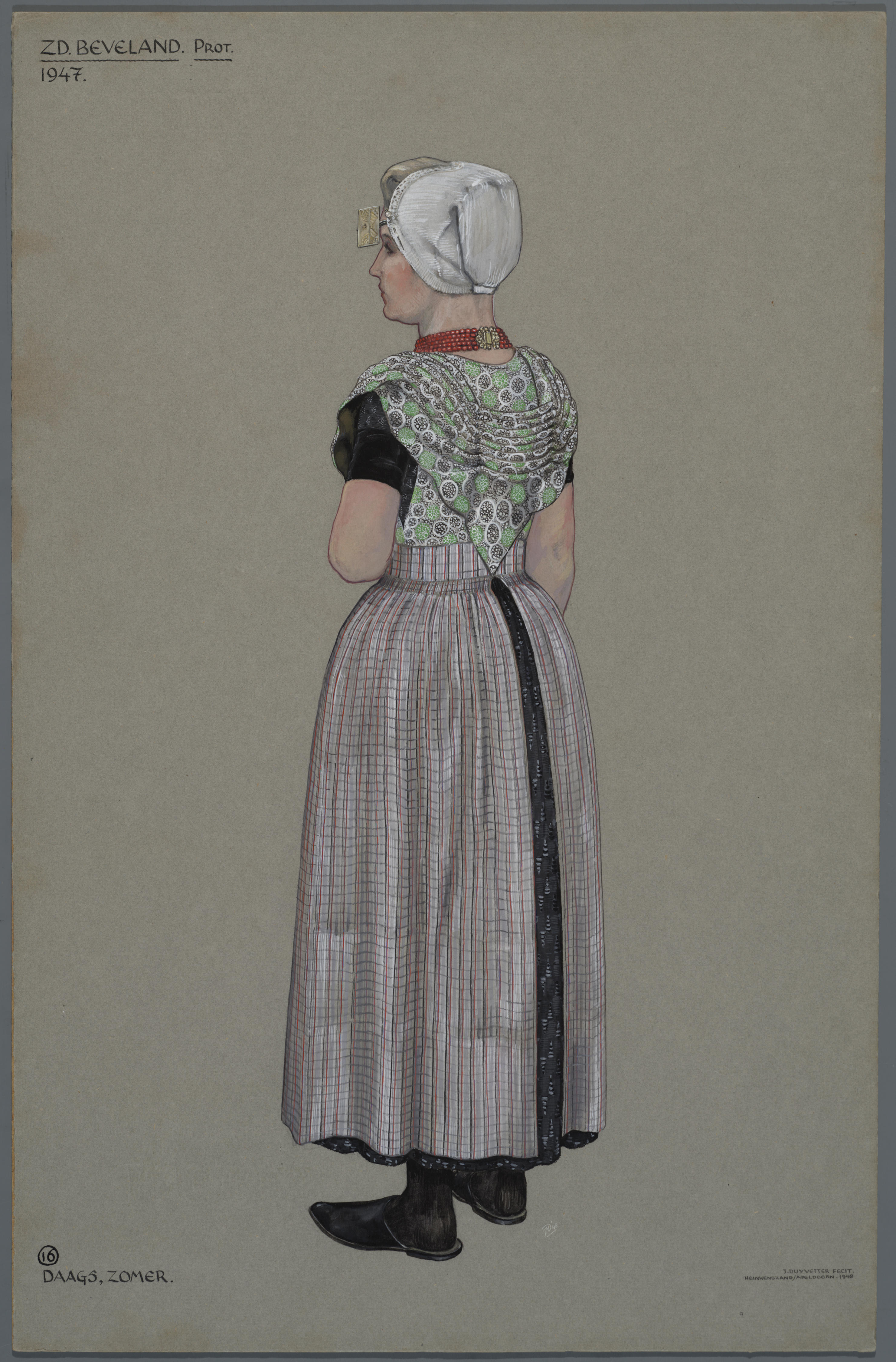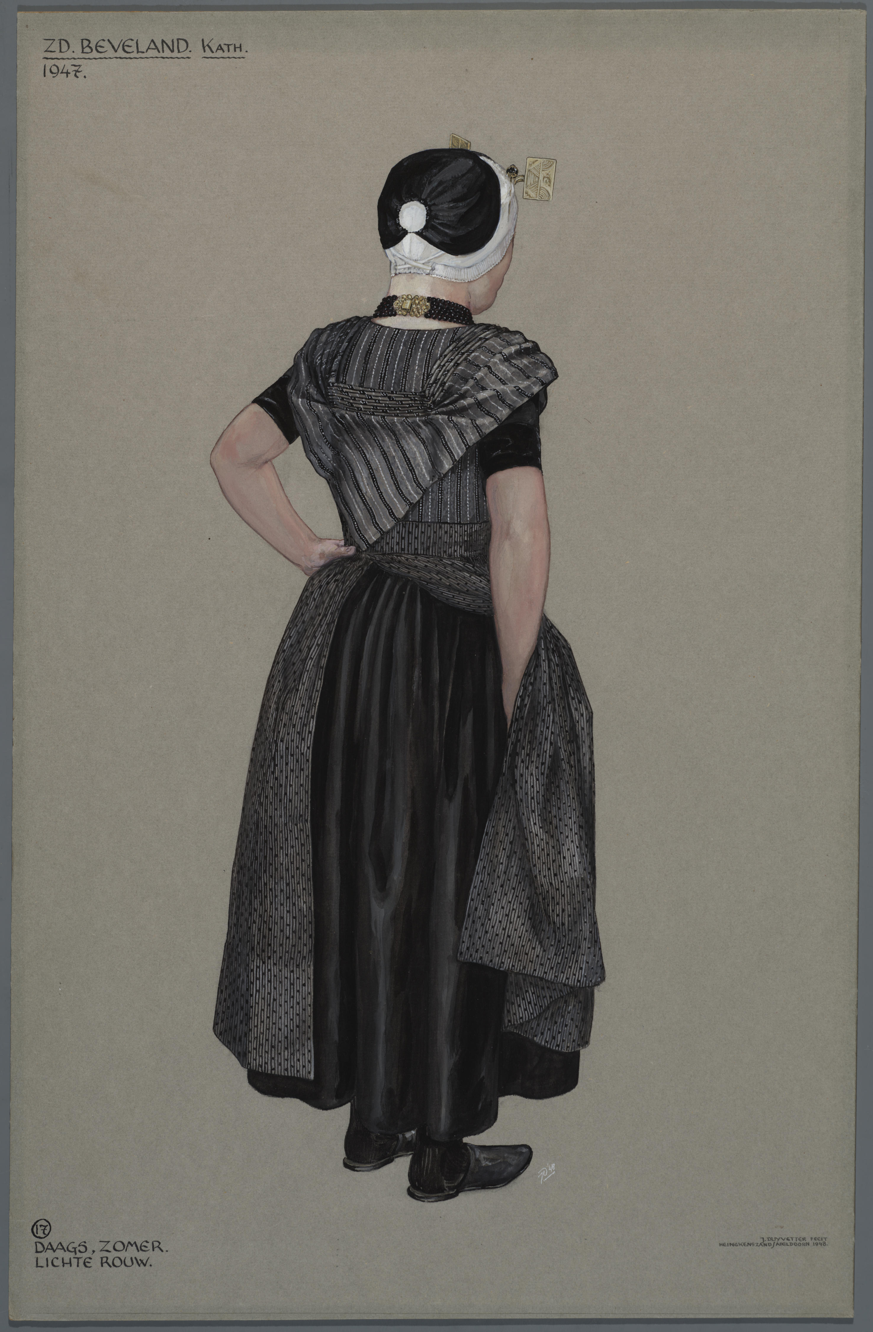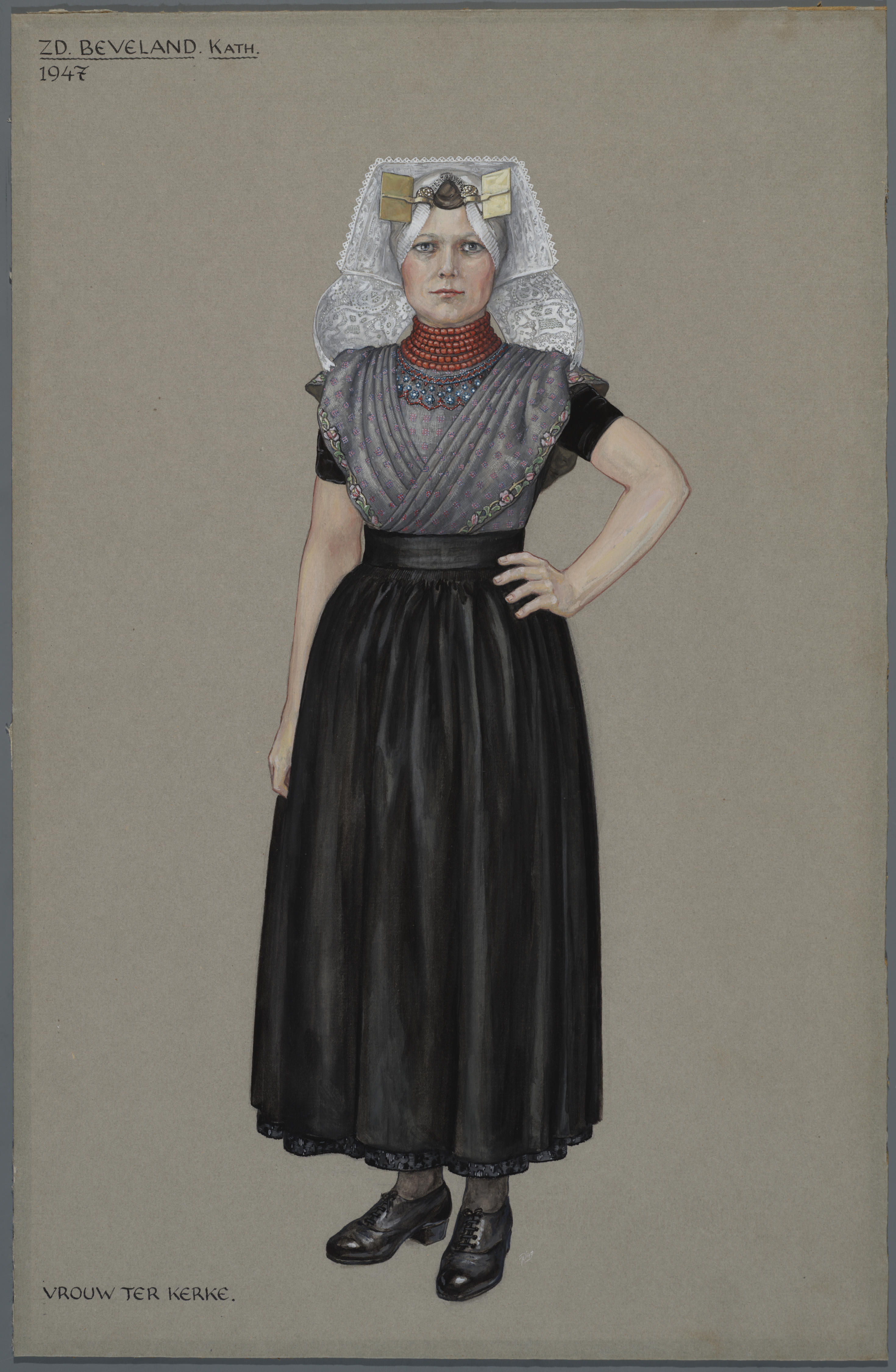 Vrouw in protestantse Zuid-Bevelandse dracht 1947