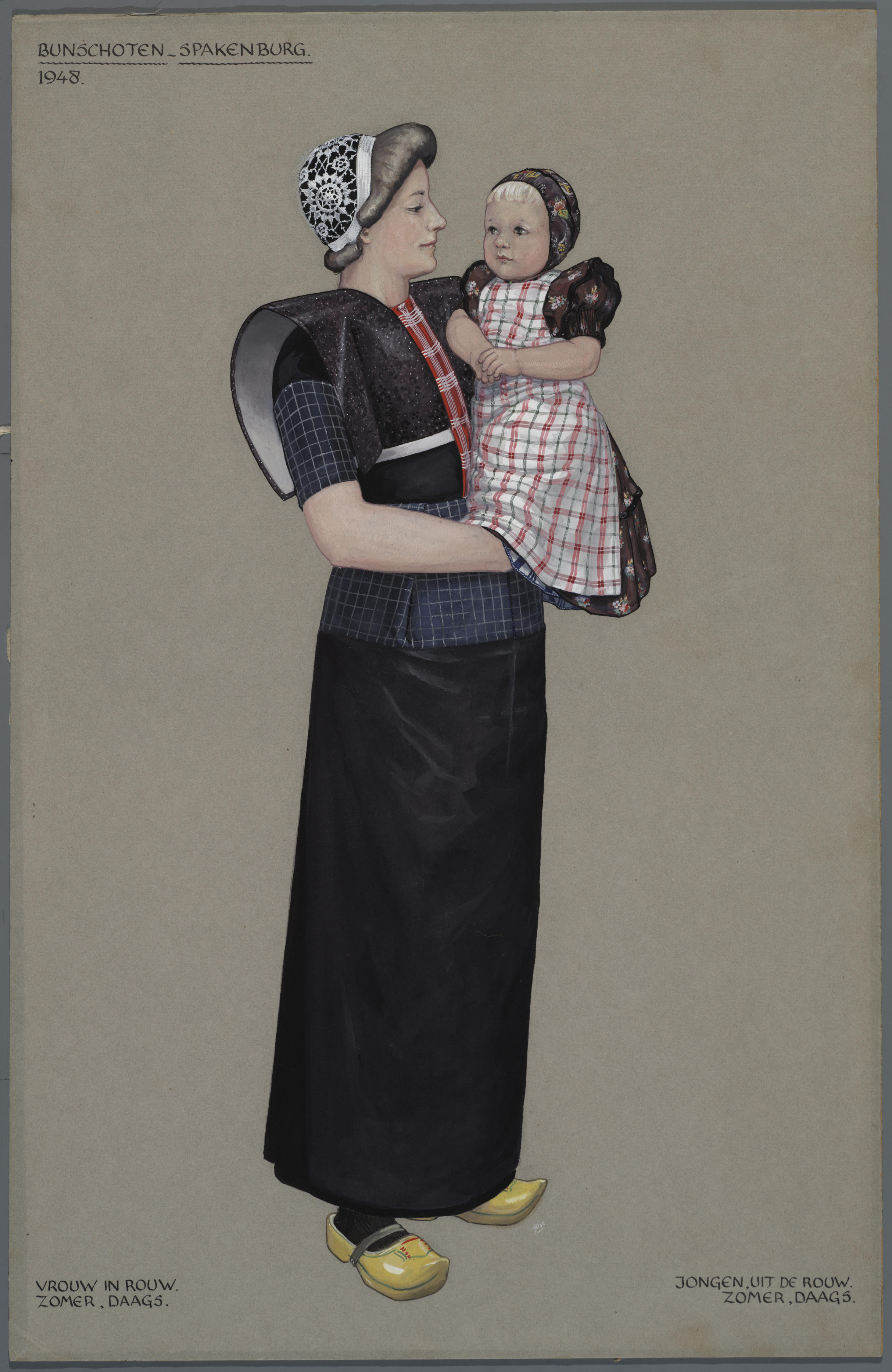 Vrouw en jongen in dracht, Bunschoten Spakenburg 1948