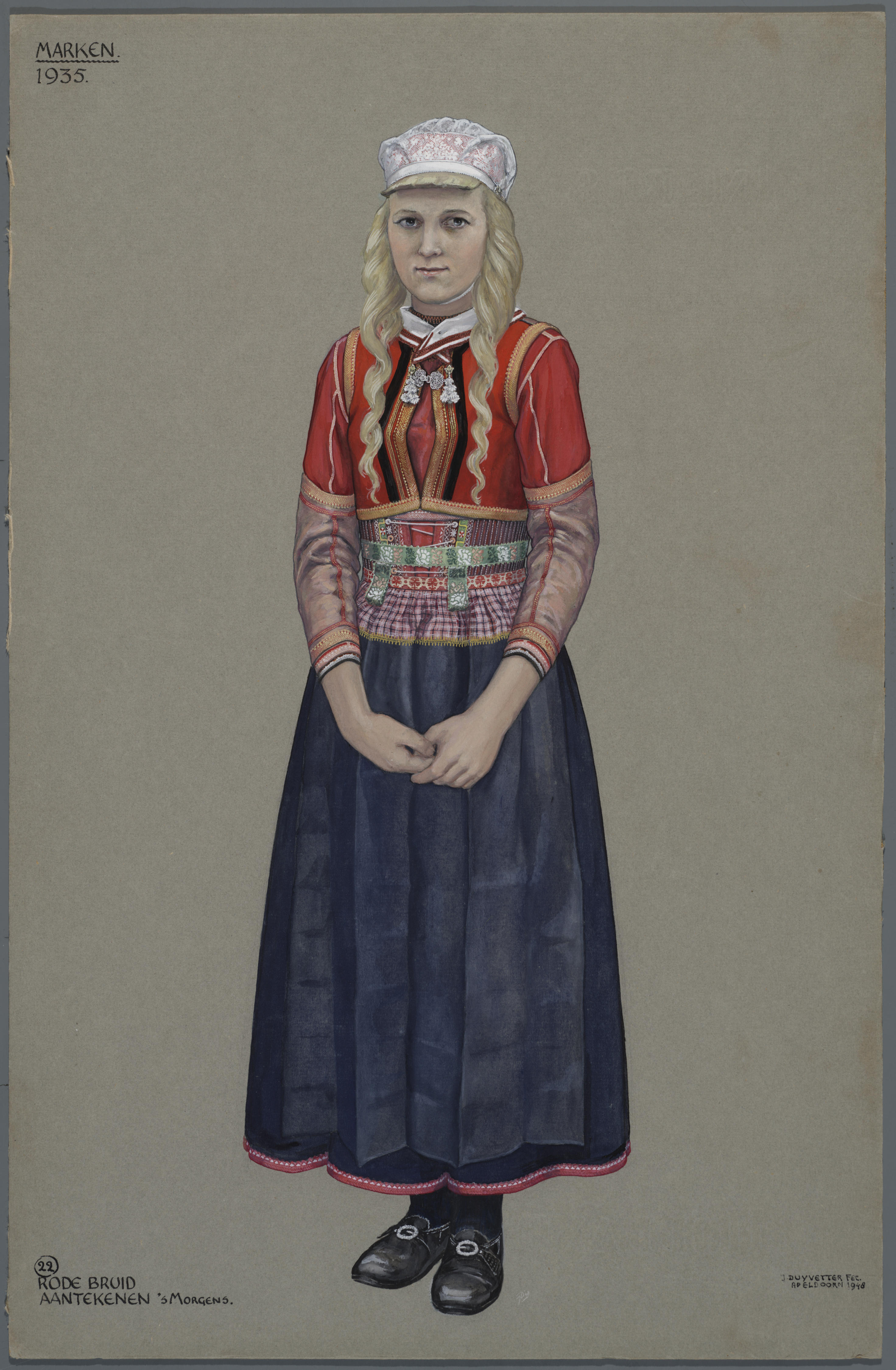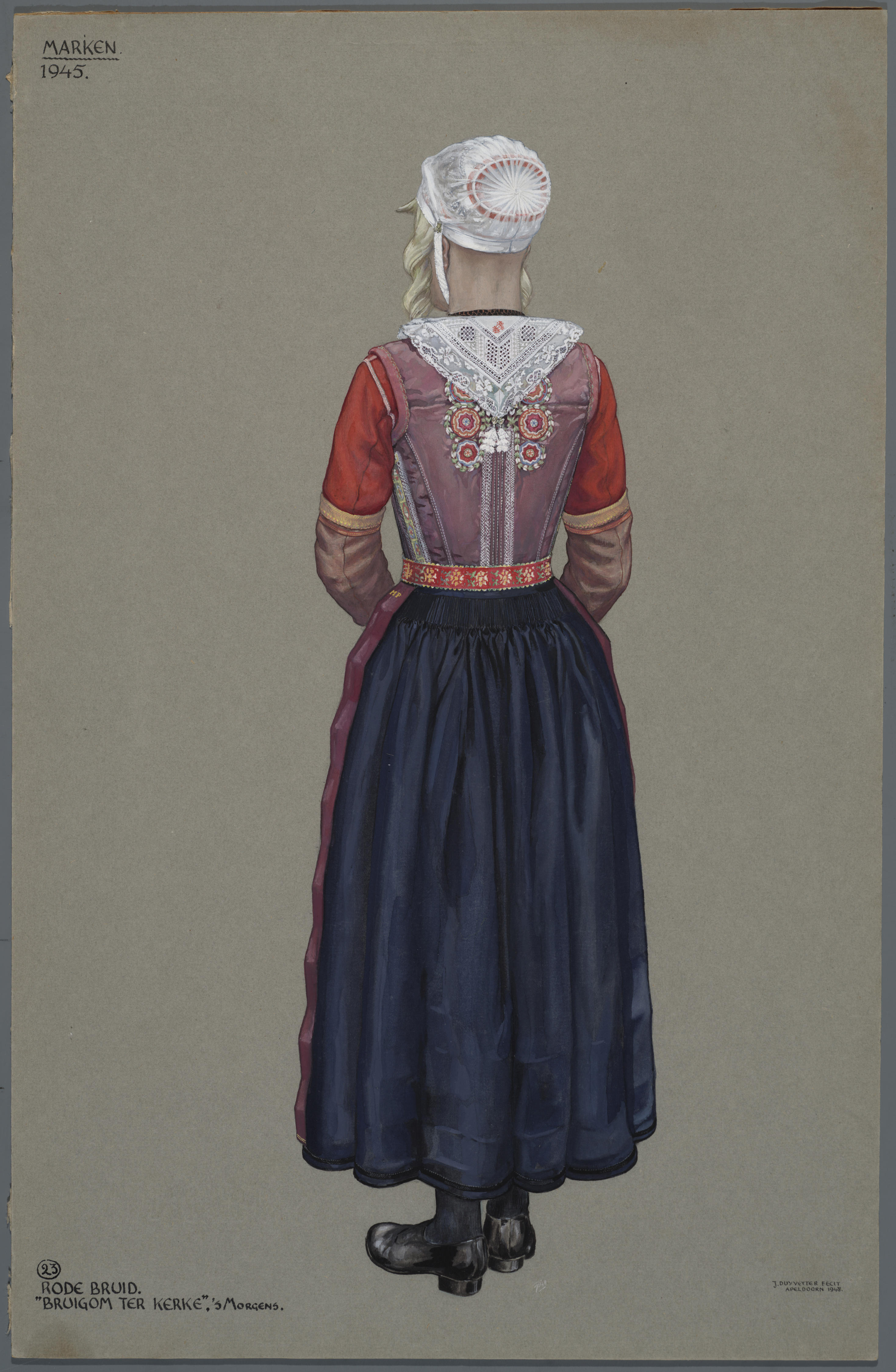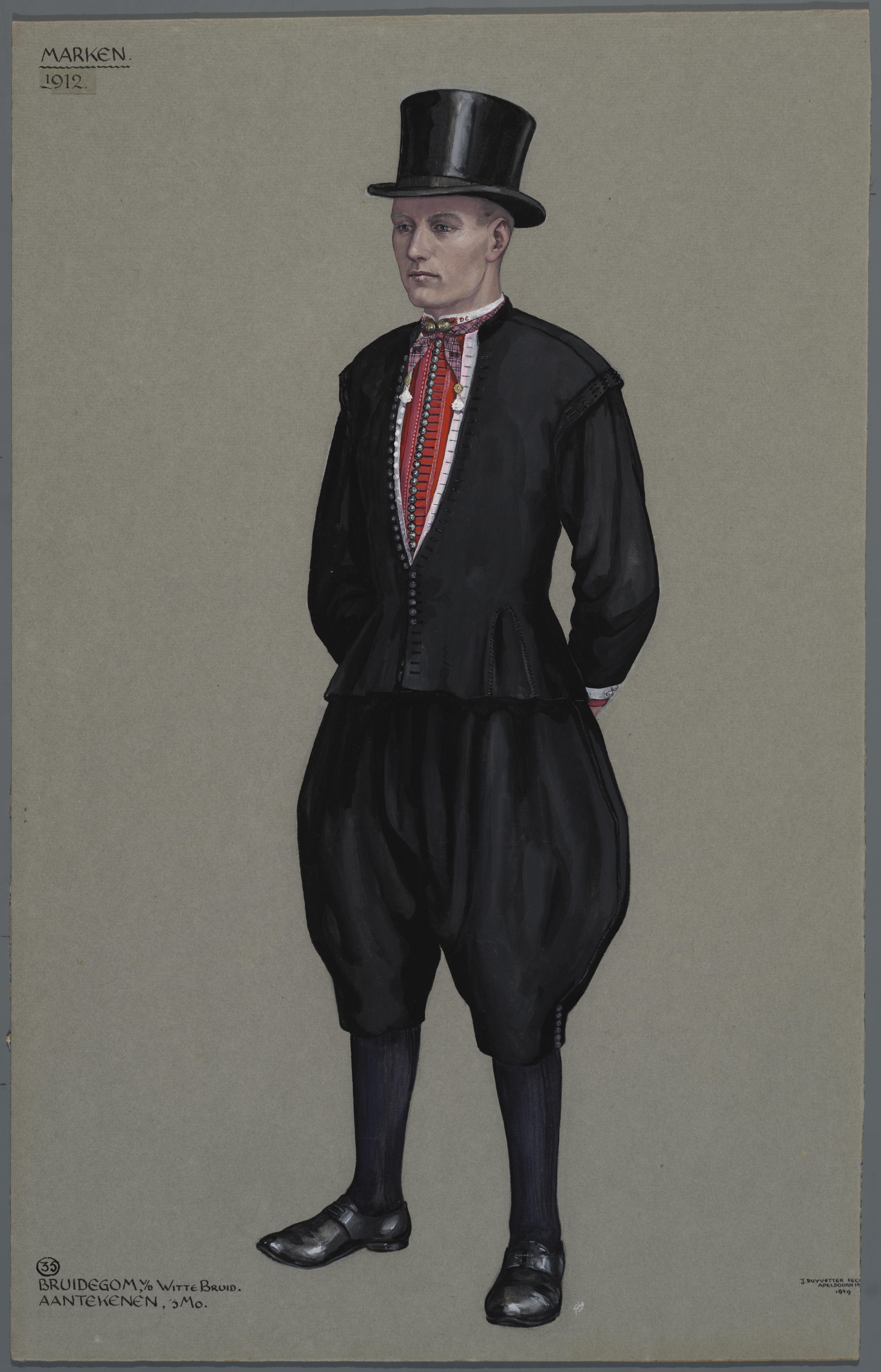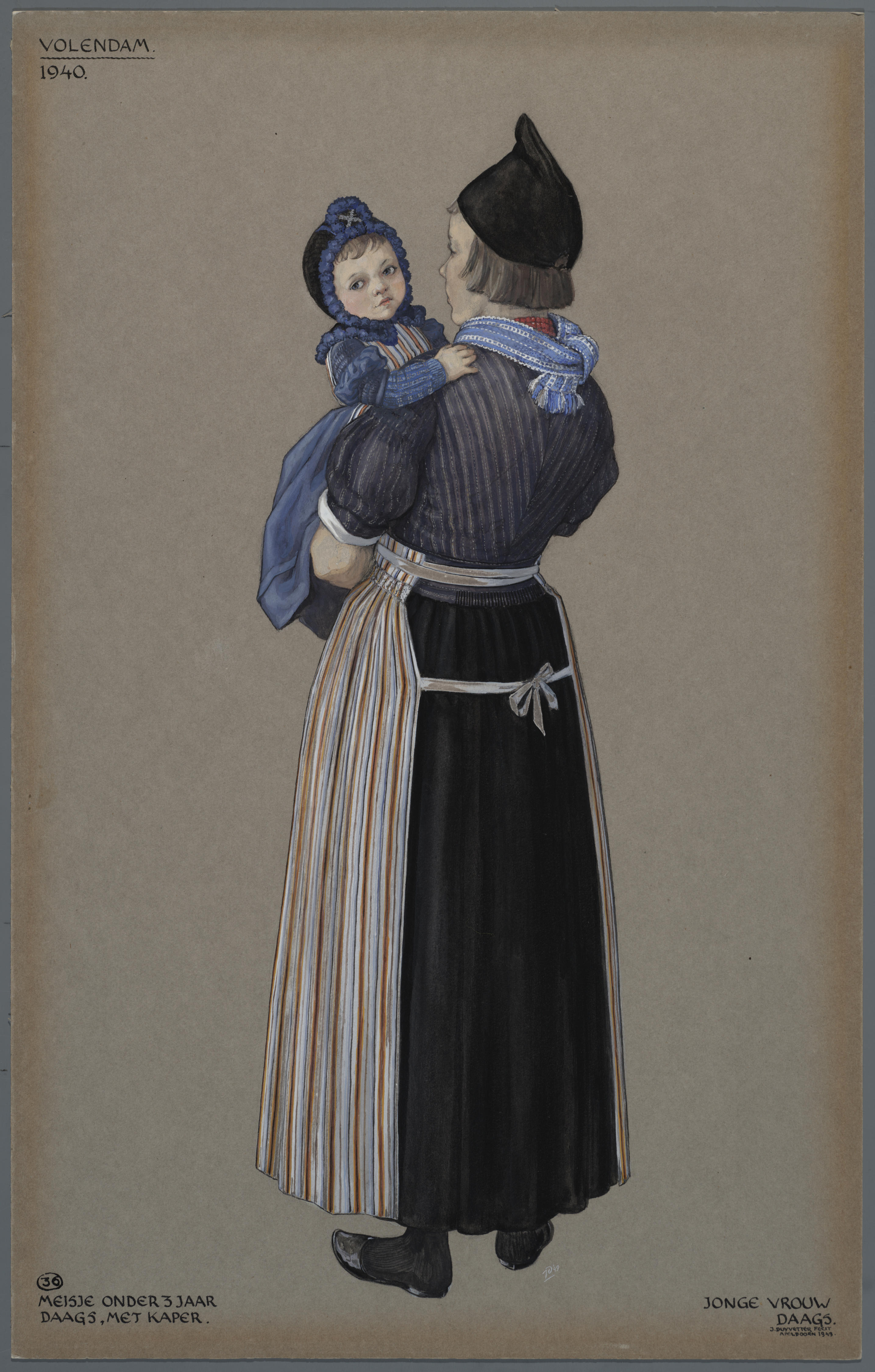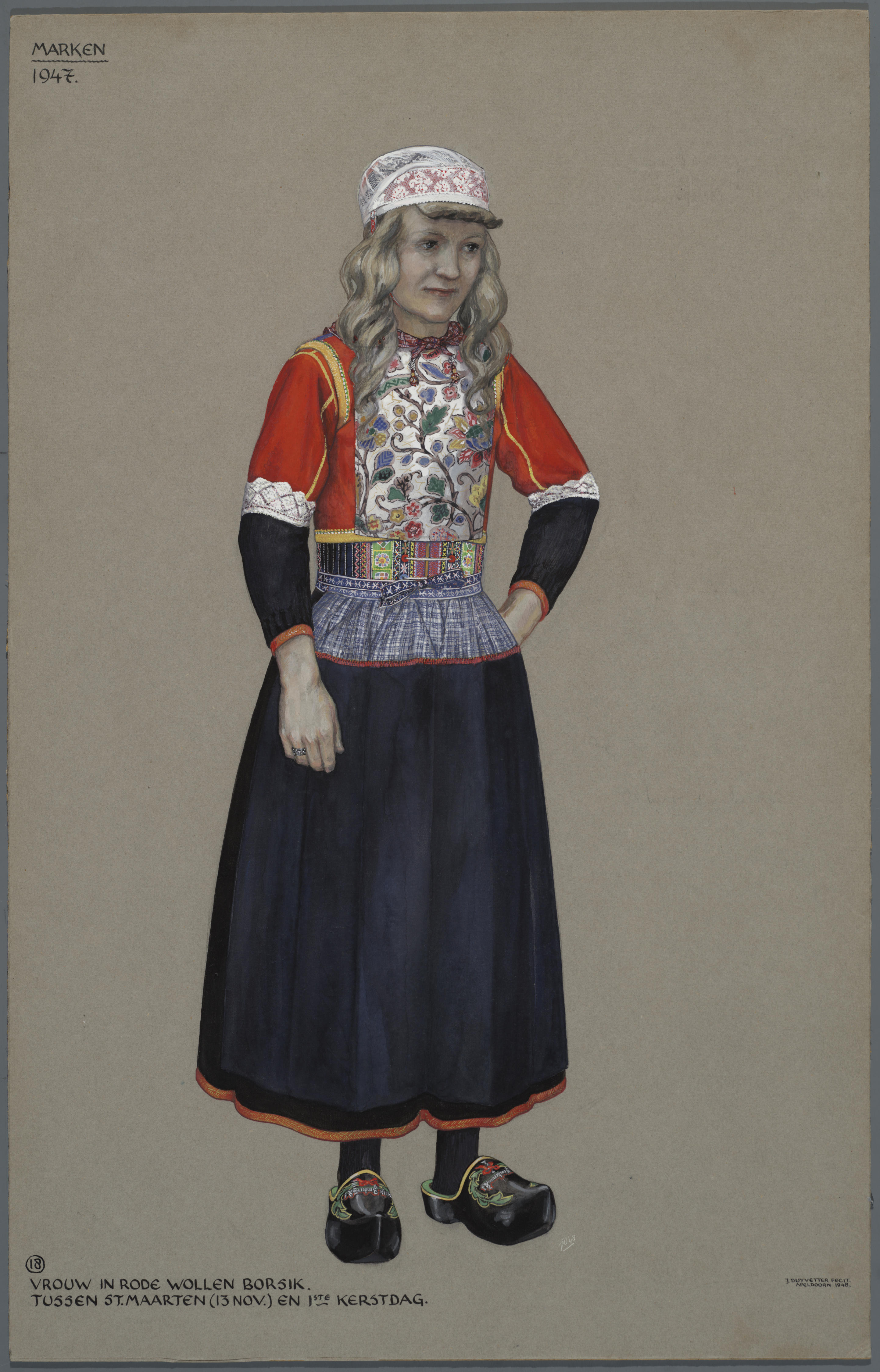 Vrouw in dracht van de basse of schone kok, Marken, ...