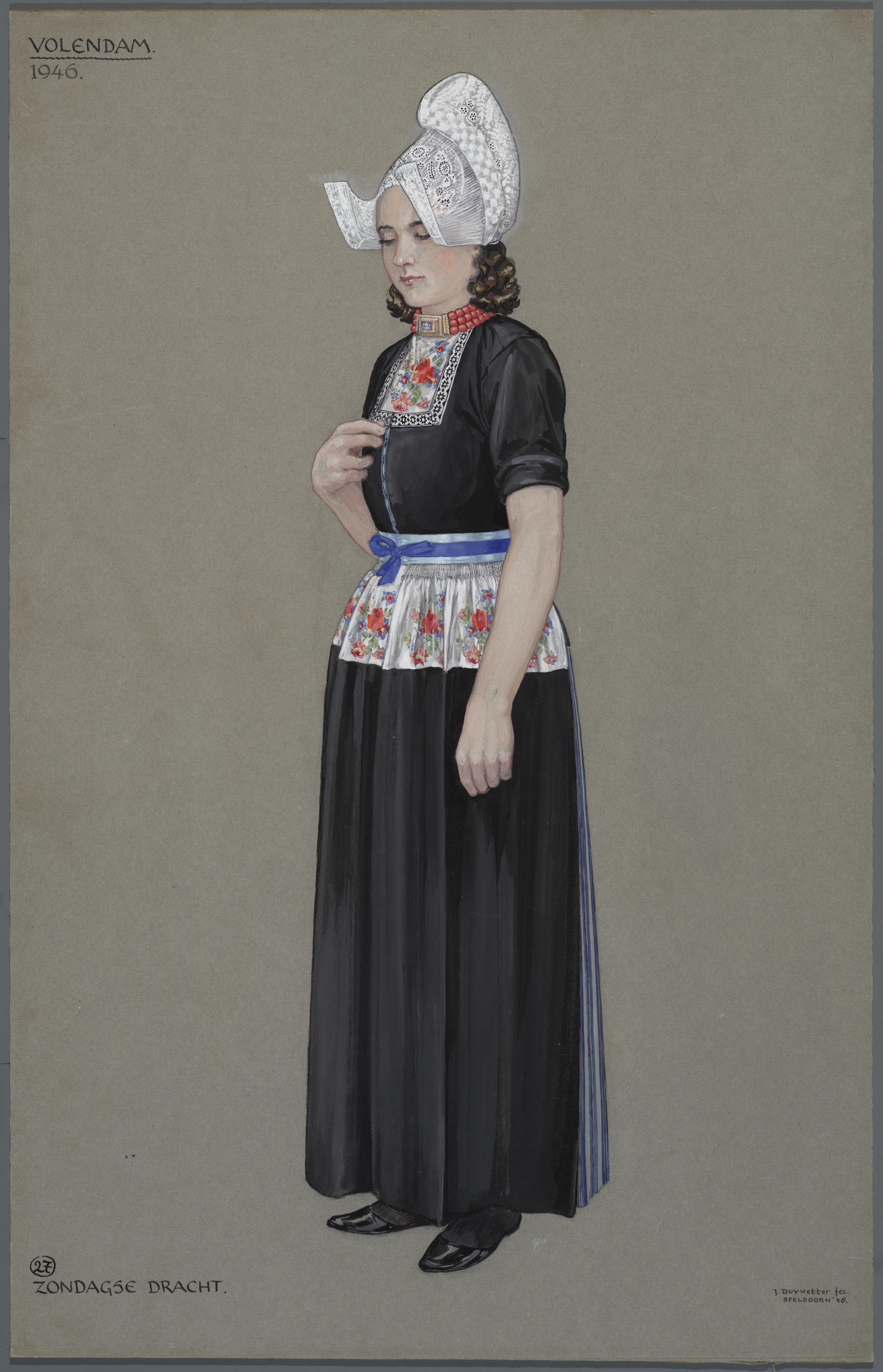 Vrouw in zondagse dracht, Bunschoten-Spakenburg 1948
