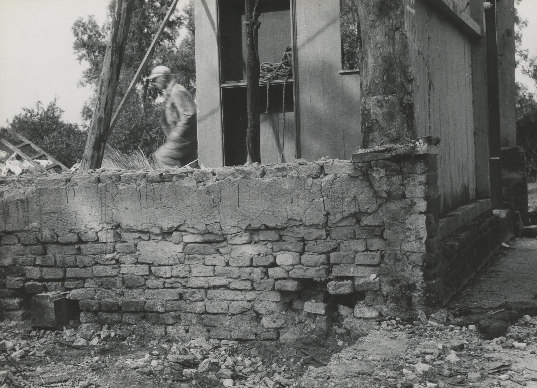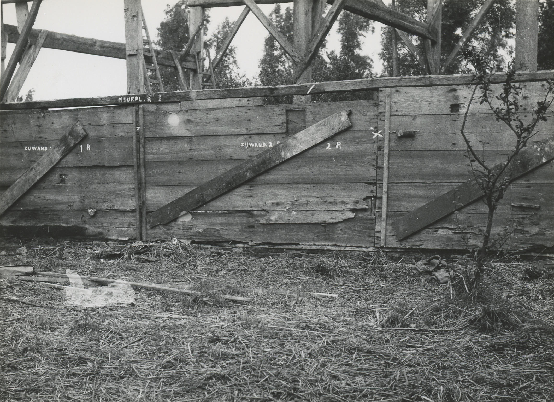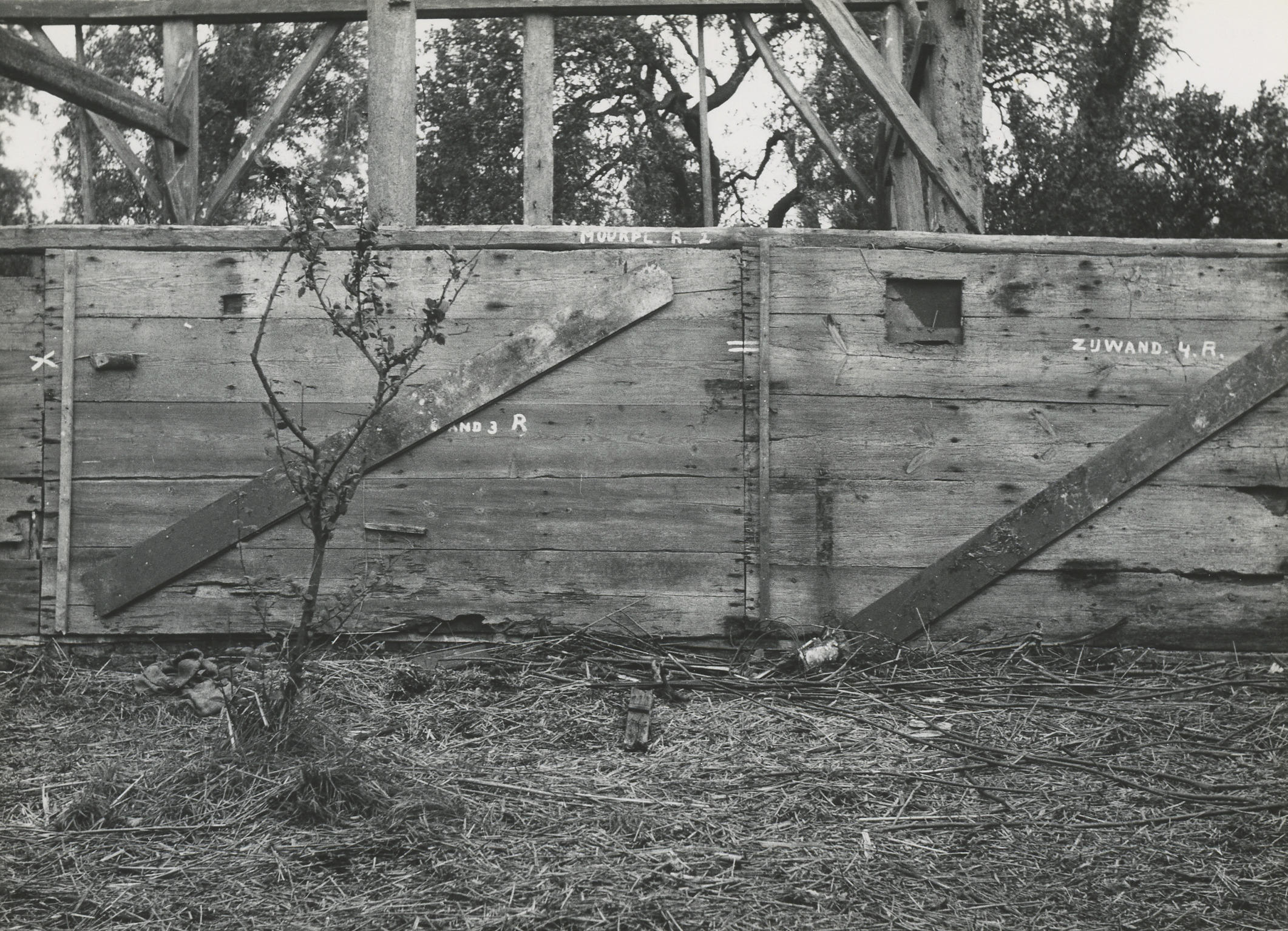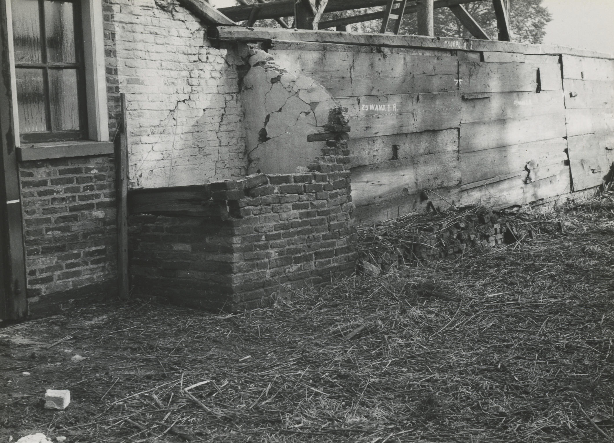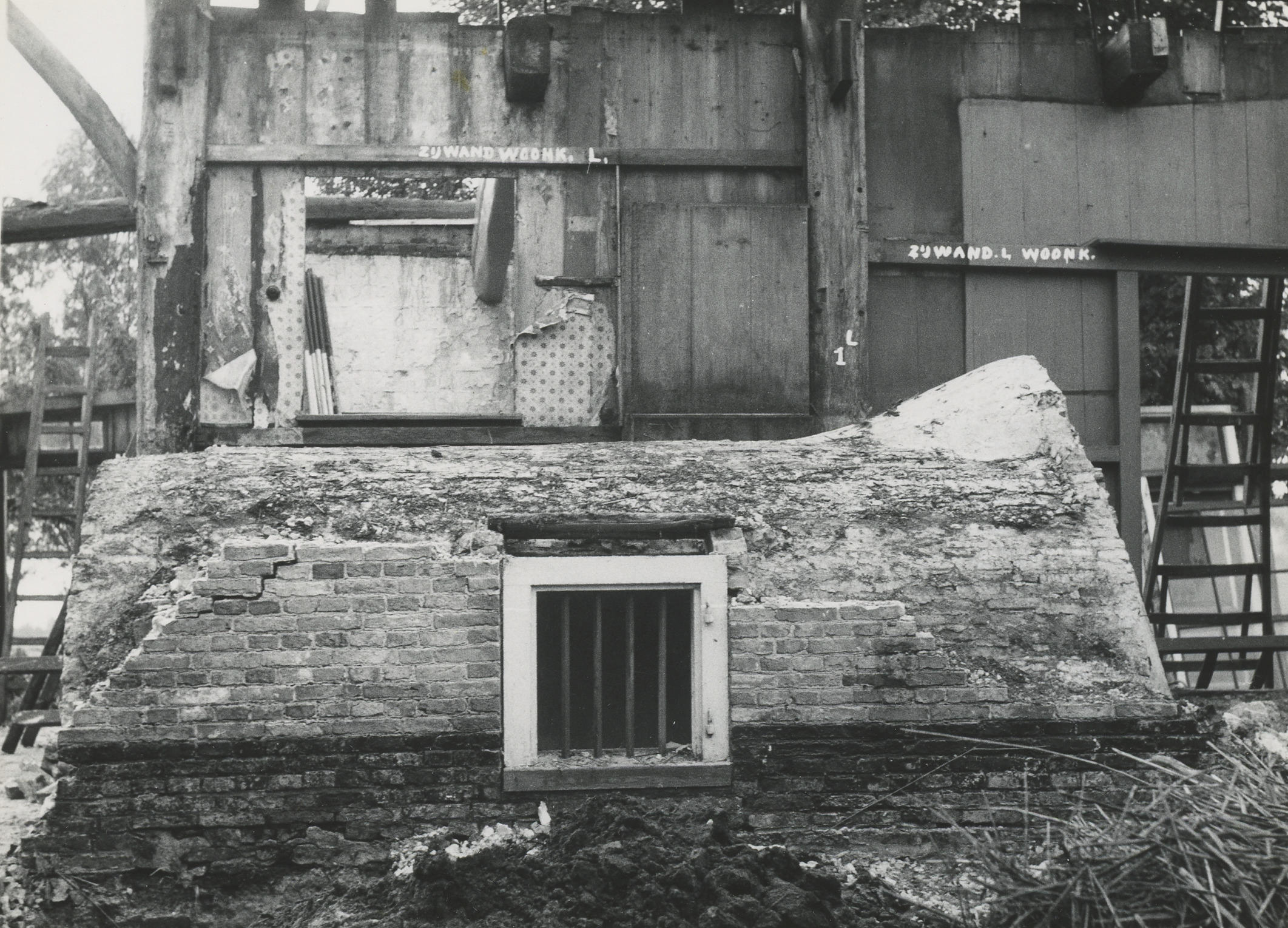 Afbraak van een boerderij, Giethoorn, 1957 (zwart-wi...