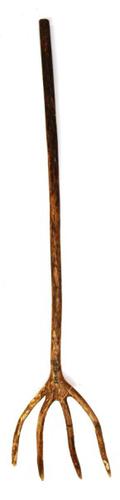 Takkenvork van metaal met houten steel gebruikt om t...