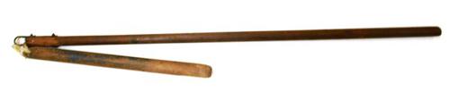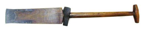 Turfsteker of oplegger van hout met een ijzerbeslag ...