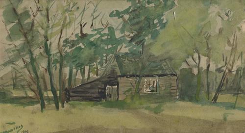 Aquarel van het huisje van Gepke aan de Houtlaan