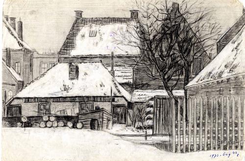 Tekening, 'achter de Kaden' te Dragten
