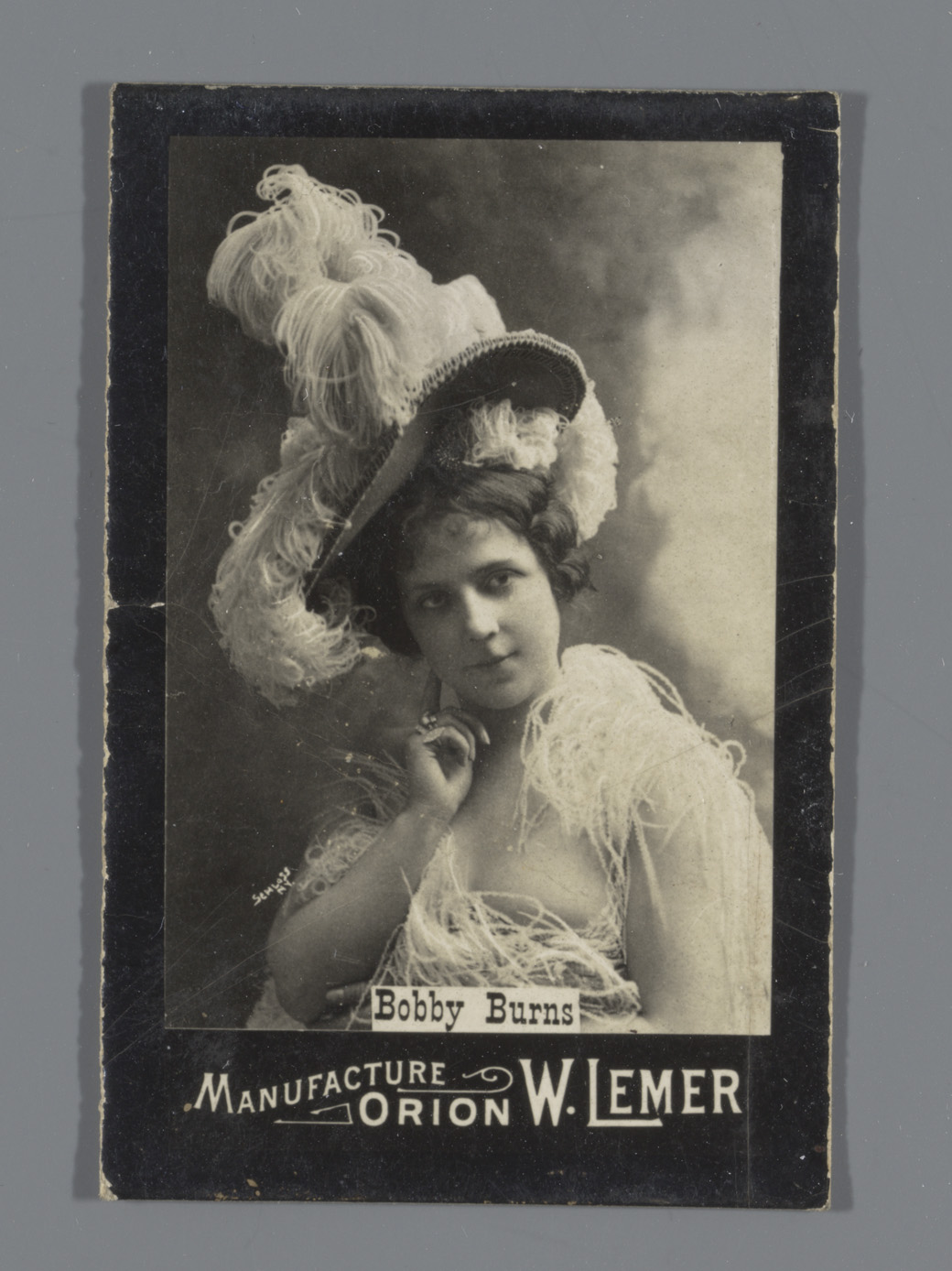 Portret van Bobby Burns met struisvogelveren, reclam...