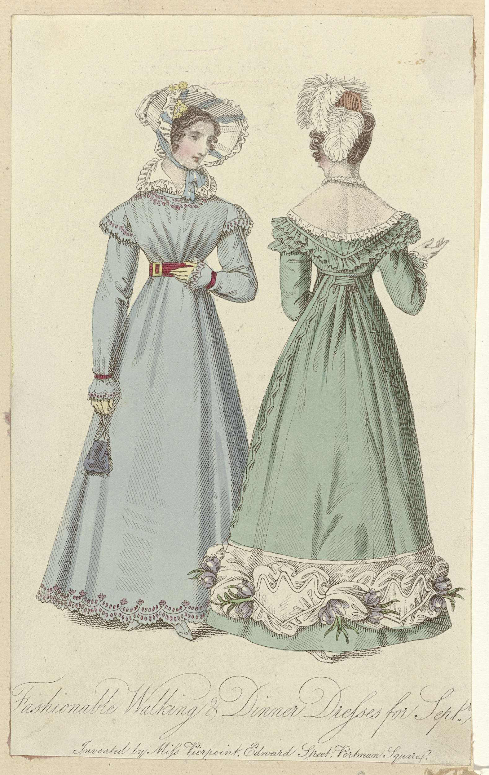 Fashionable Walking & Dinner Dresses for Sept. 1820 ...