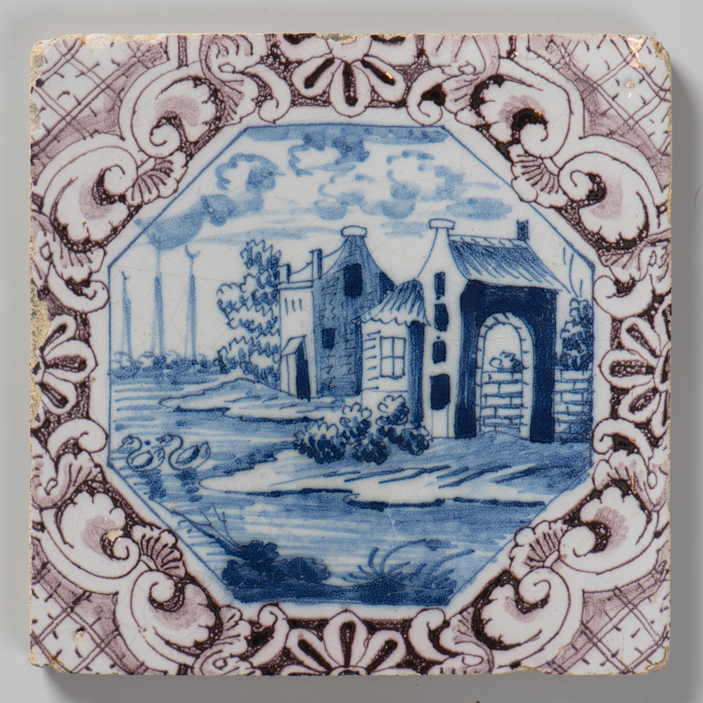 tegel van aardewerk met tinglazuur, voorstellende: h...