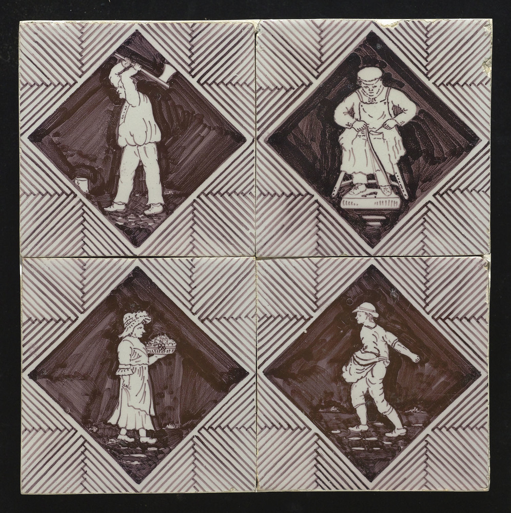 tegel van aardewerk met tinglazuur, voorstellende: v...