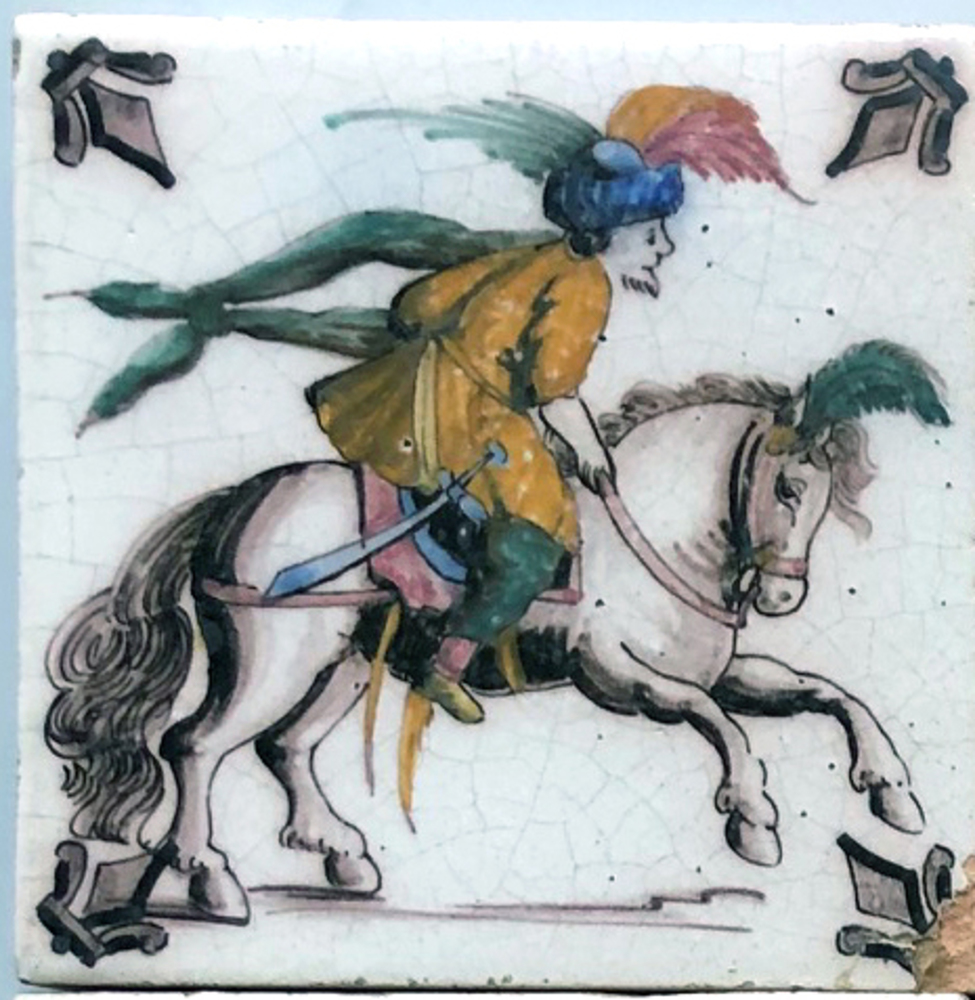tegel van keramiek met tinglazuur, voorstellende: ru...