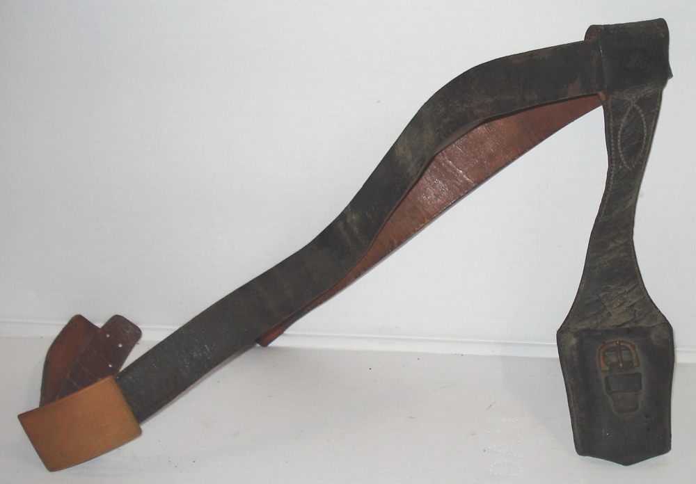 koppelriemvan leer met koperen gesp en holster. Peri...