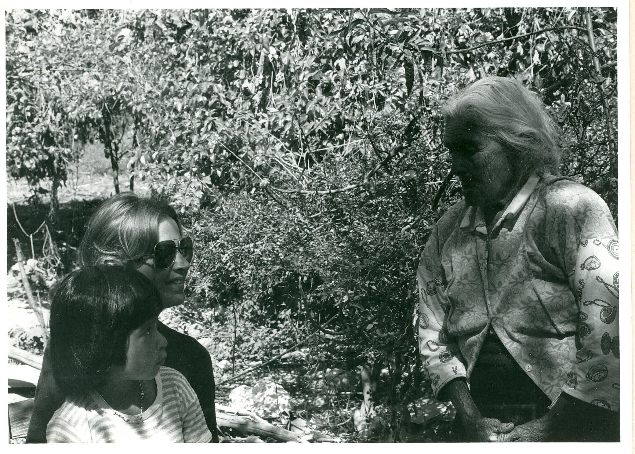 Paula Leyenaar en dochter Floor met vrouw uit het dorp