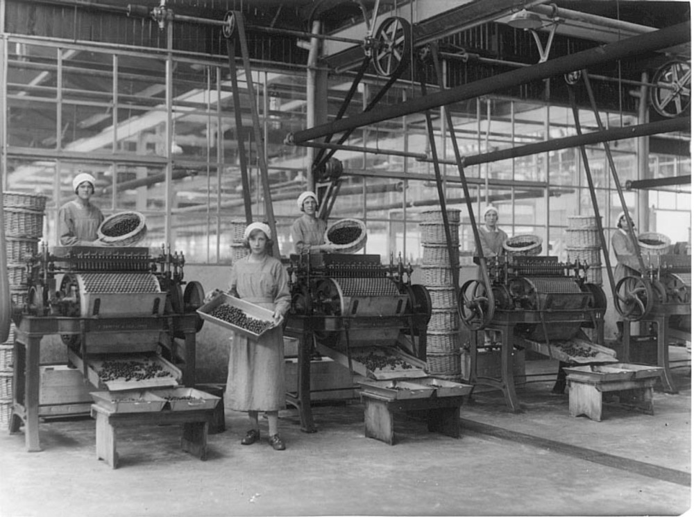Vrouwen aan de kersenonpitmachines