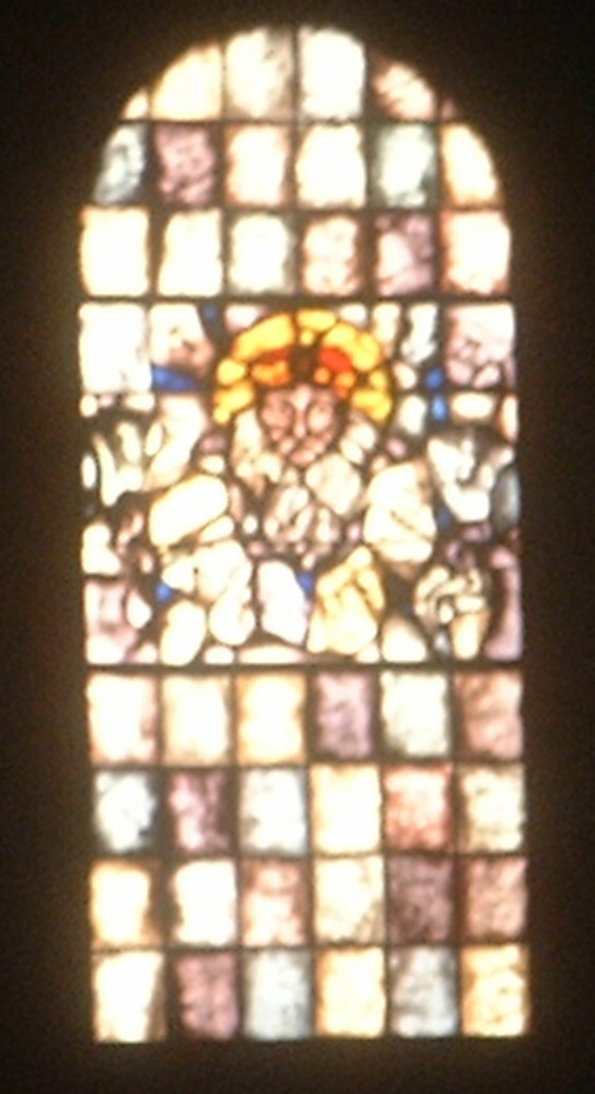 Glasraam in de stadskerk van Huissen. Koning David i...