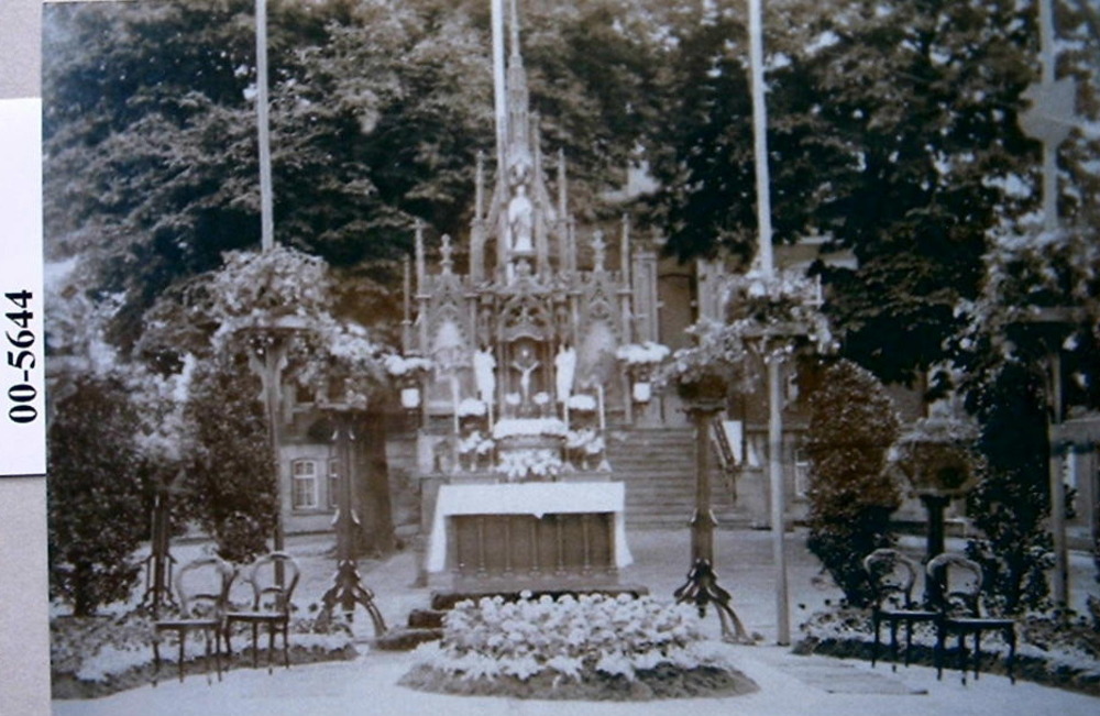 Het rustaltaar op de Markt.De vier stoelen zijn van ...