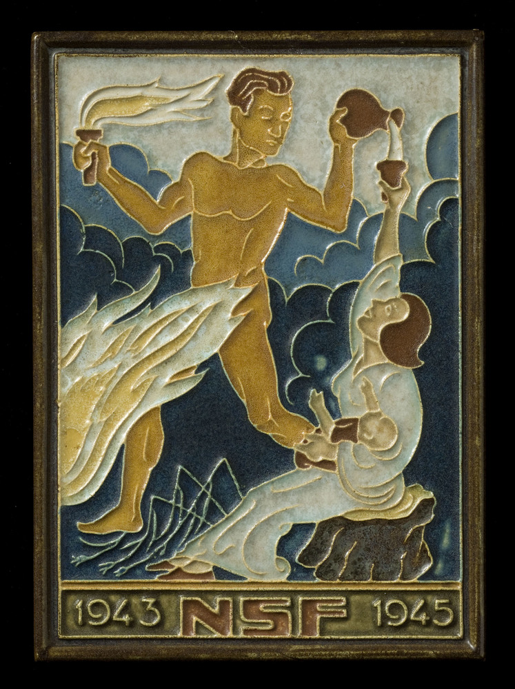 Tegel van keramiek in cloisonné-techniek, voorstelle...