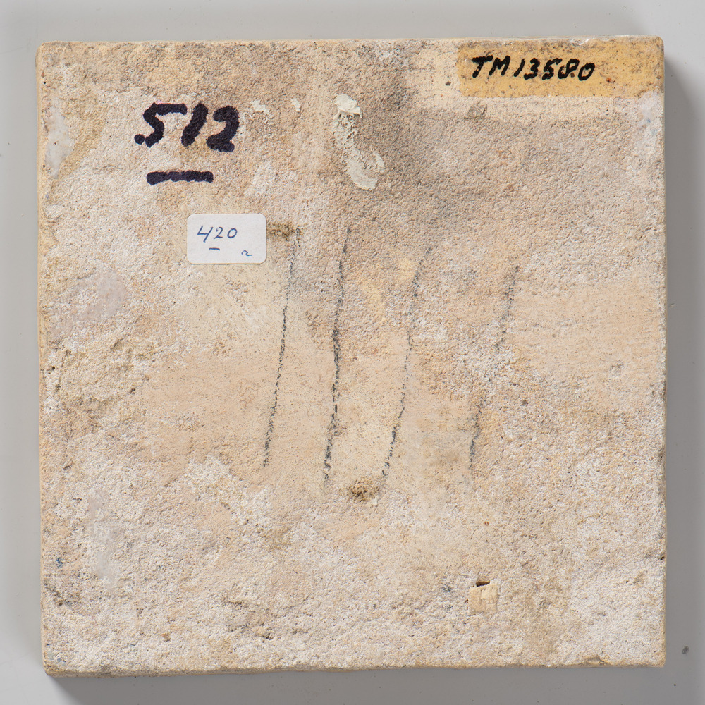 Tegel van keramiek met tinglazuur, voorstellende: or...