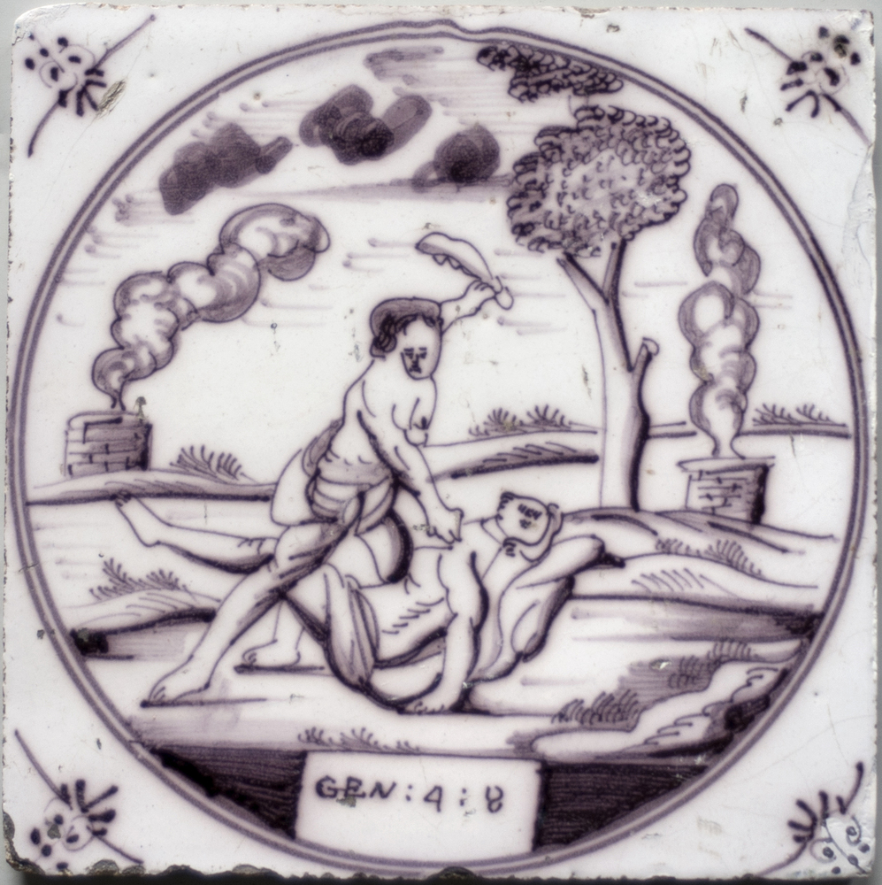 tegel van keramiek met tinglazuur, voorstellende: Ka...