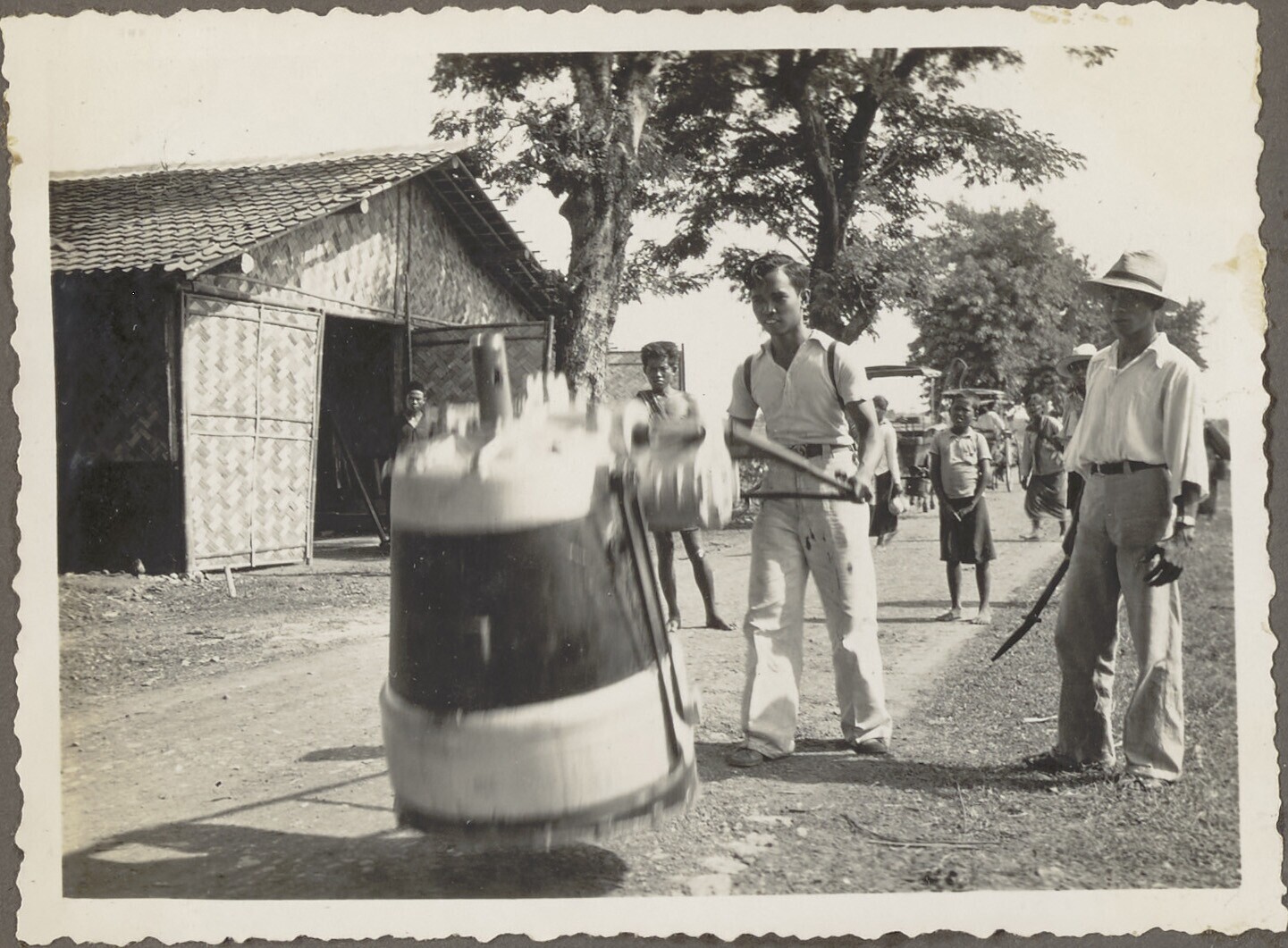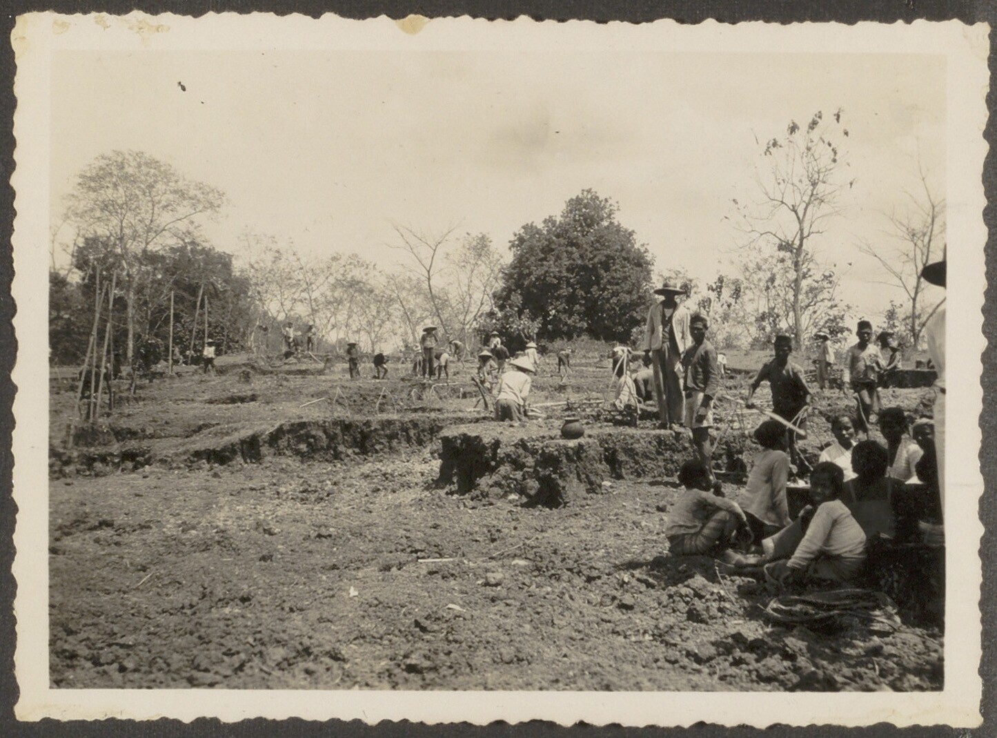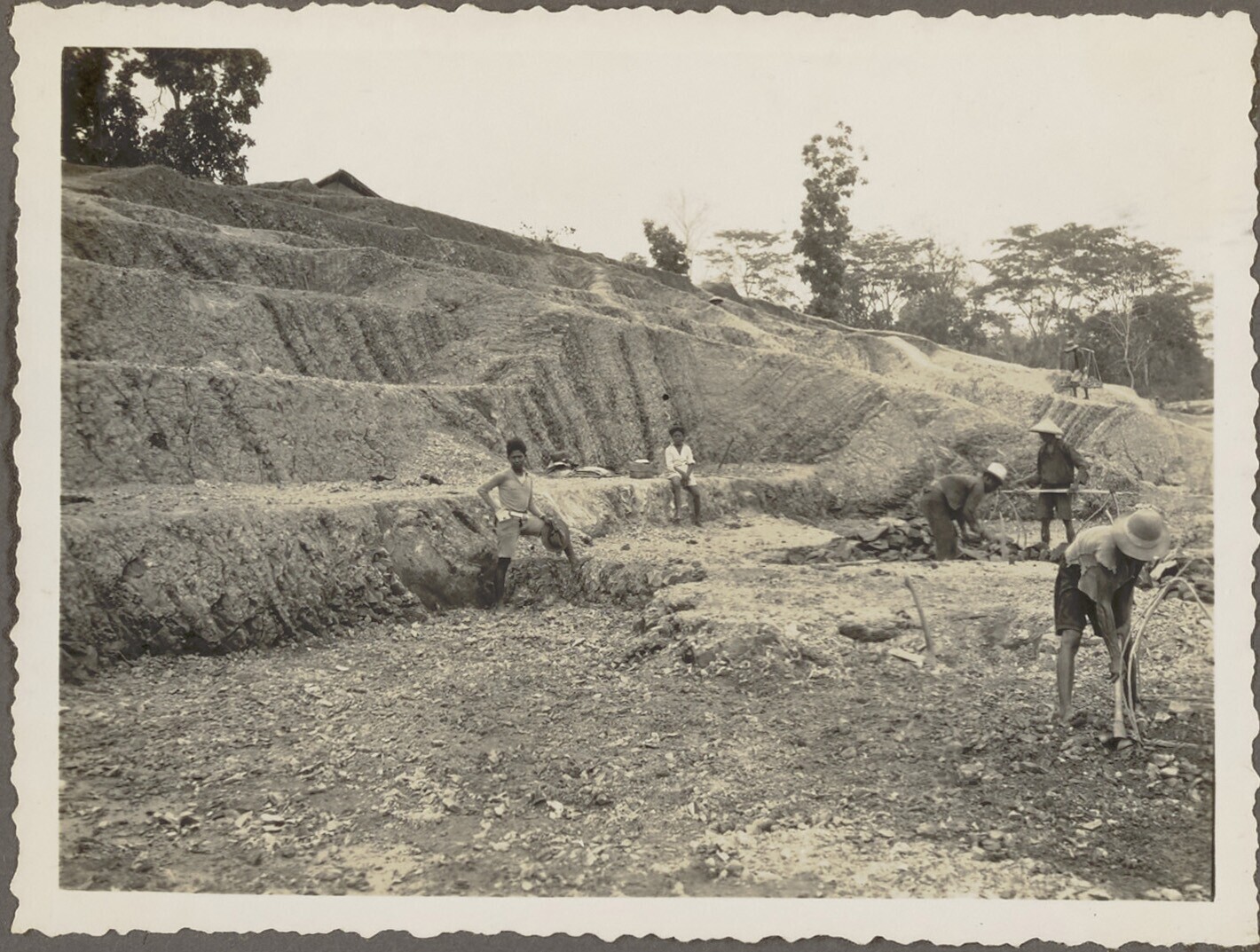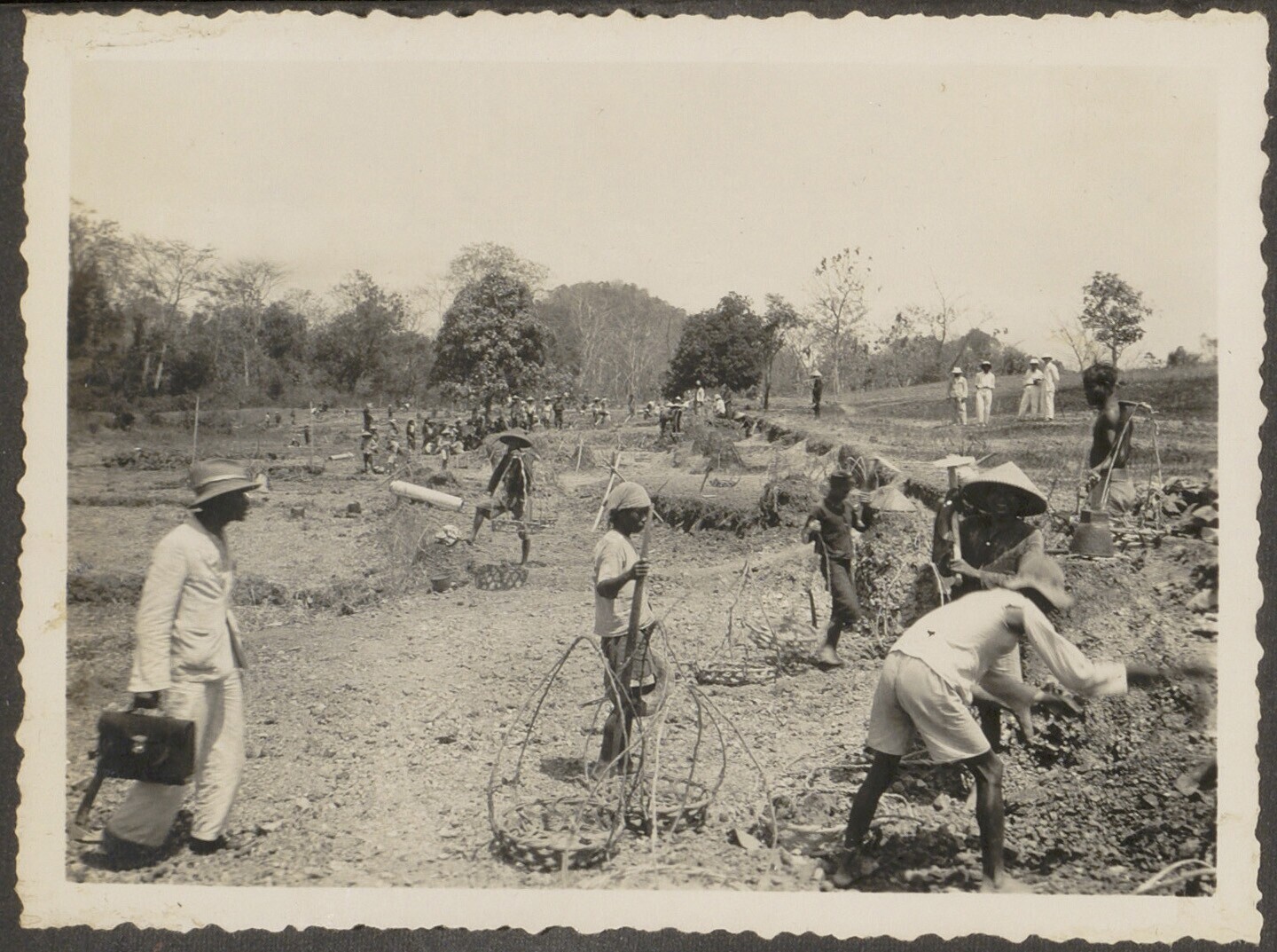 Javaanse arbeiders werken aan de aanleg van een wate...