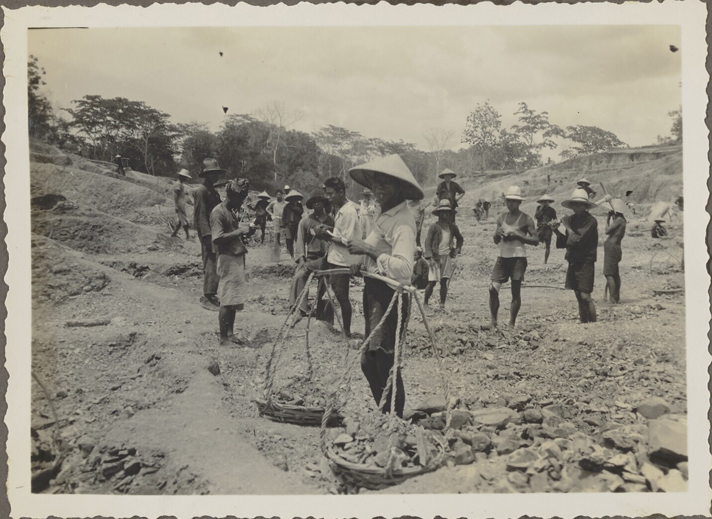 Javaanse arbeiders op een steenwinningsterrein bij G...