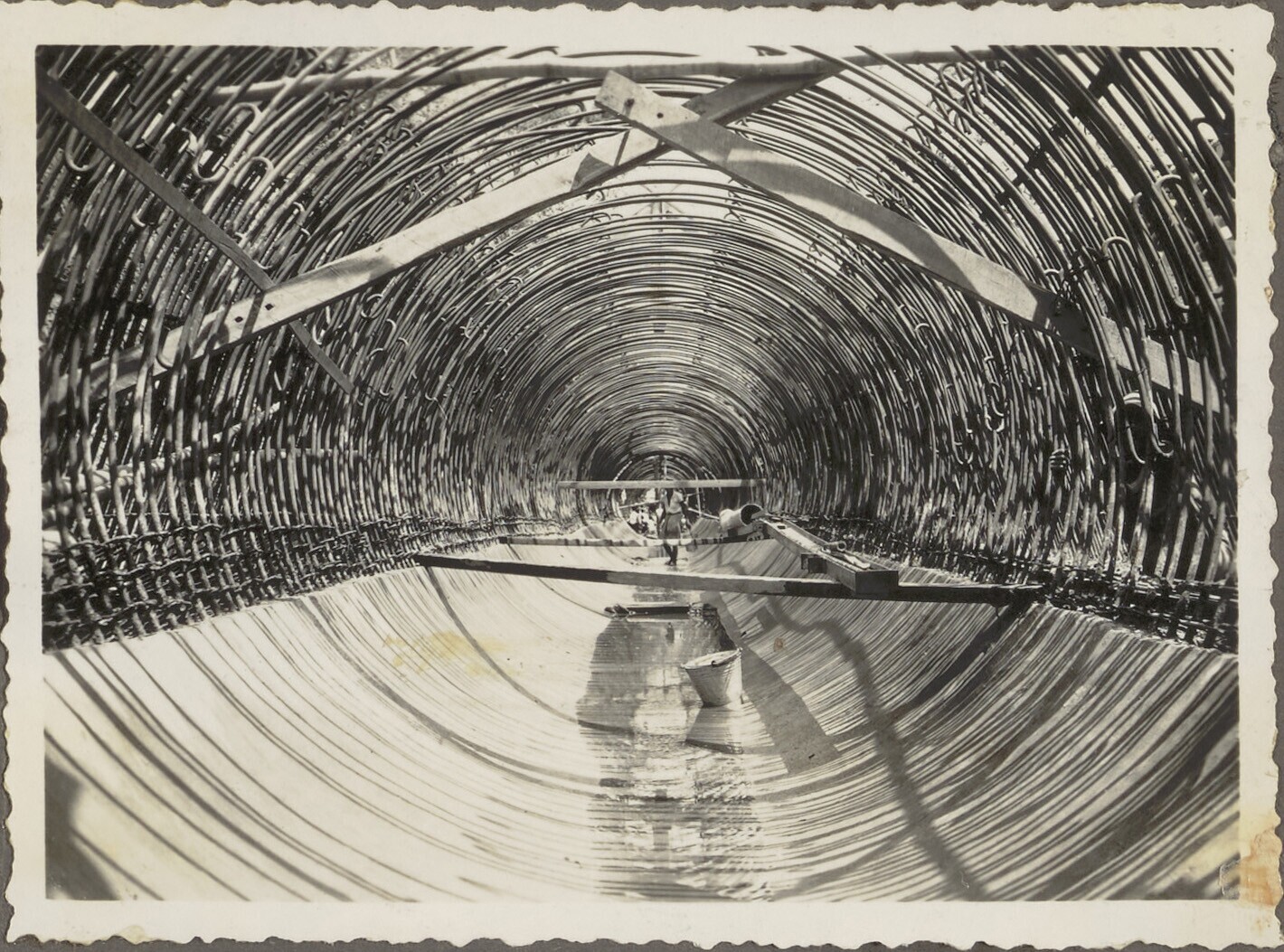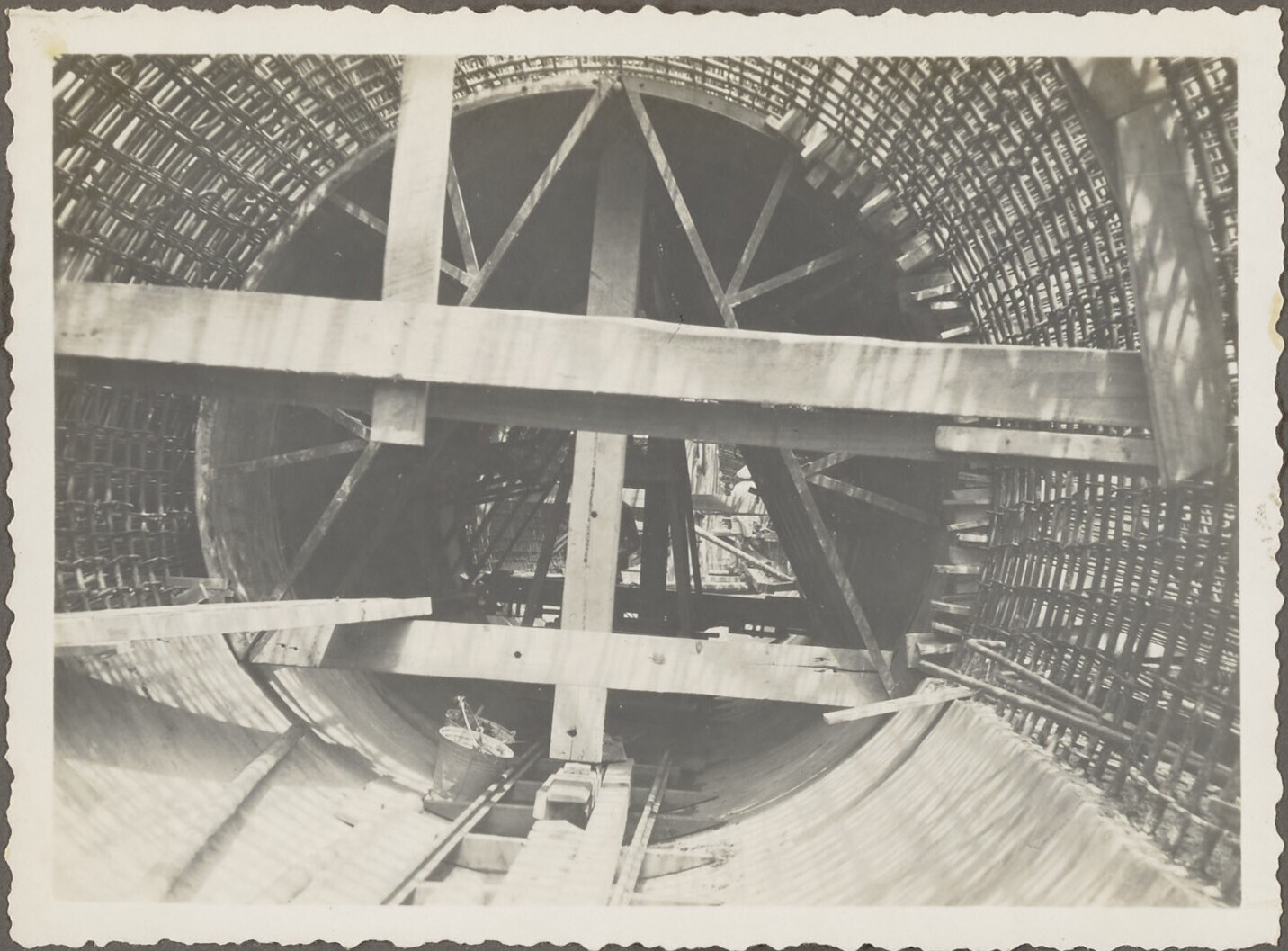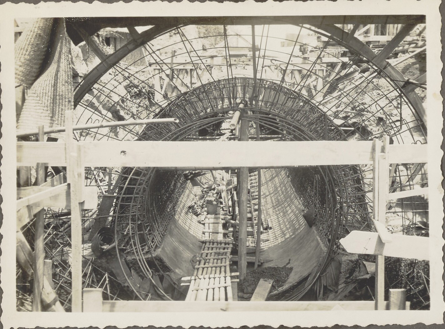 Bouwwerkzaamheden aan de woelbak van een waterdistri...