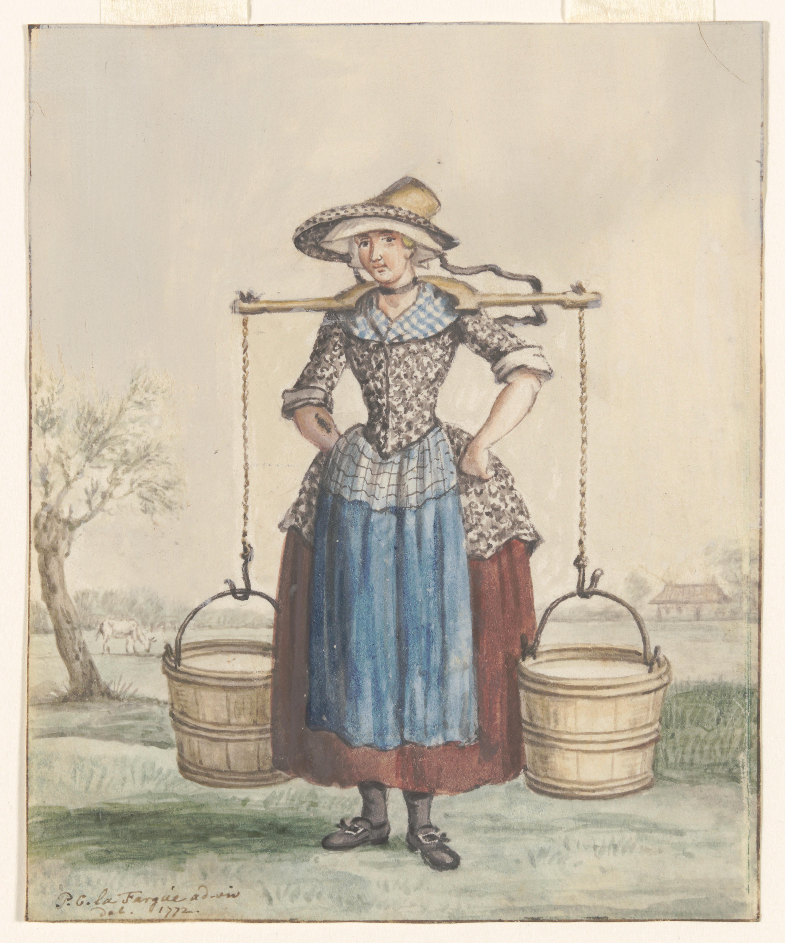 Man met pijp en vrouw met spinnewiel, voor 1865