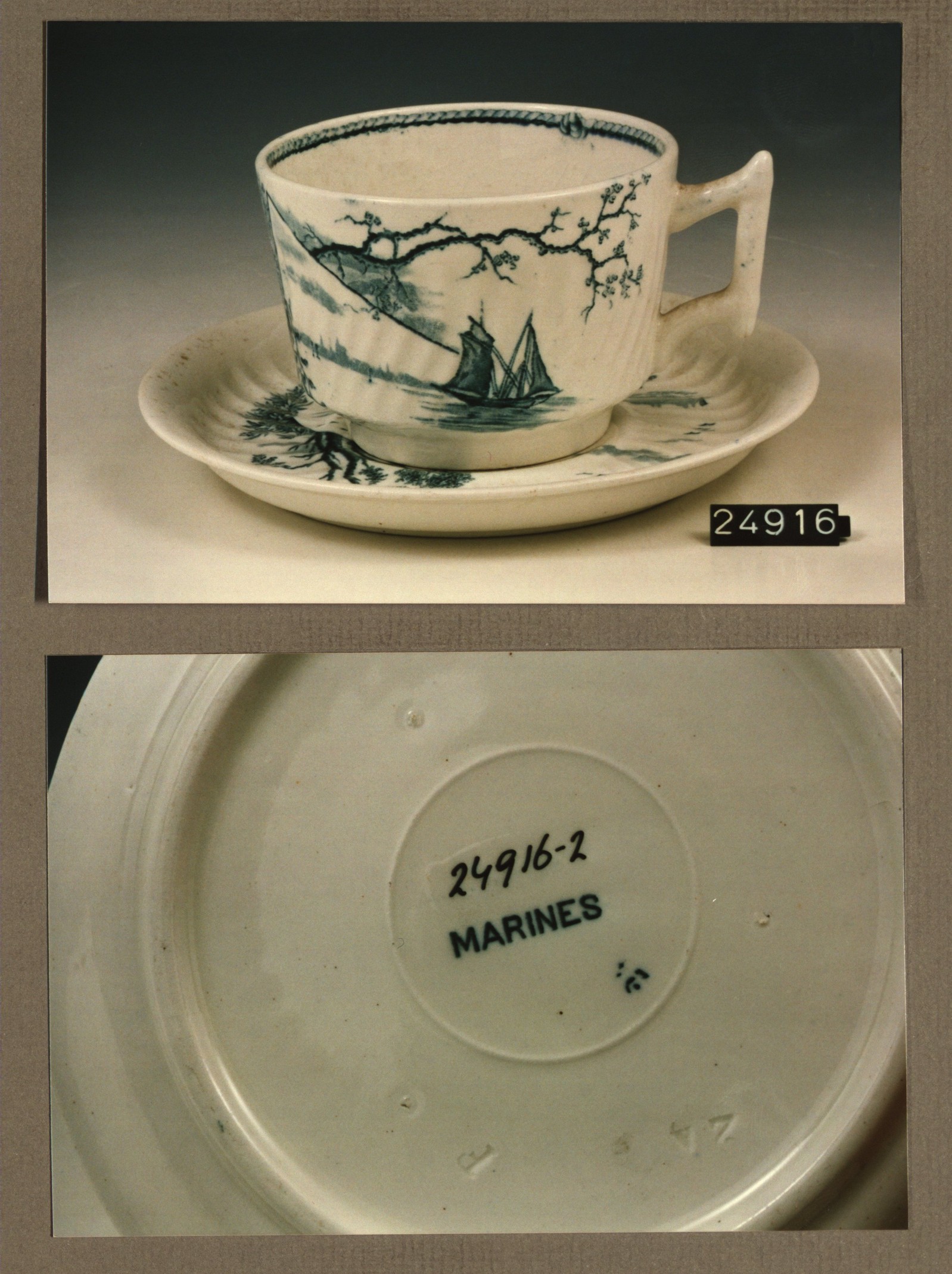 Kop en schotel, model Torse met decor Marines