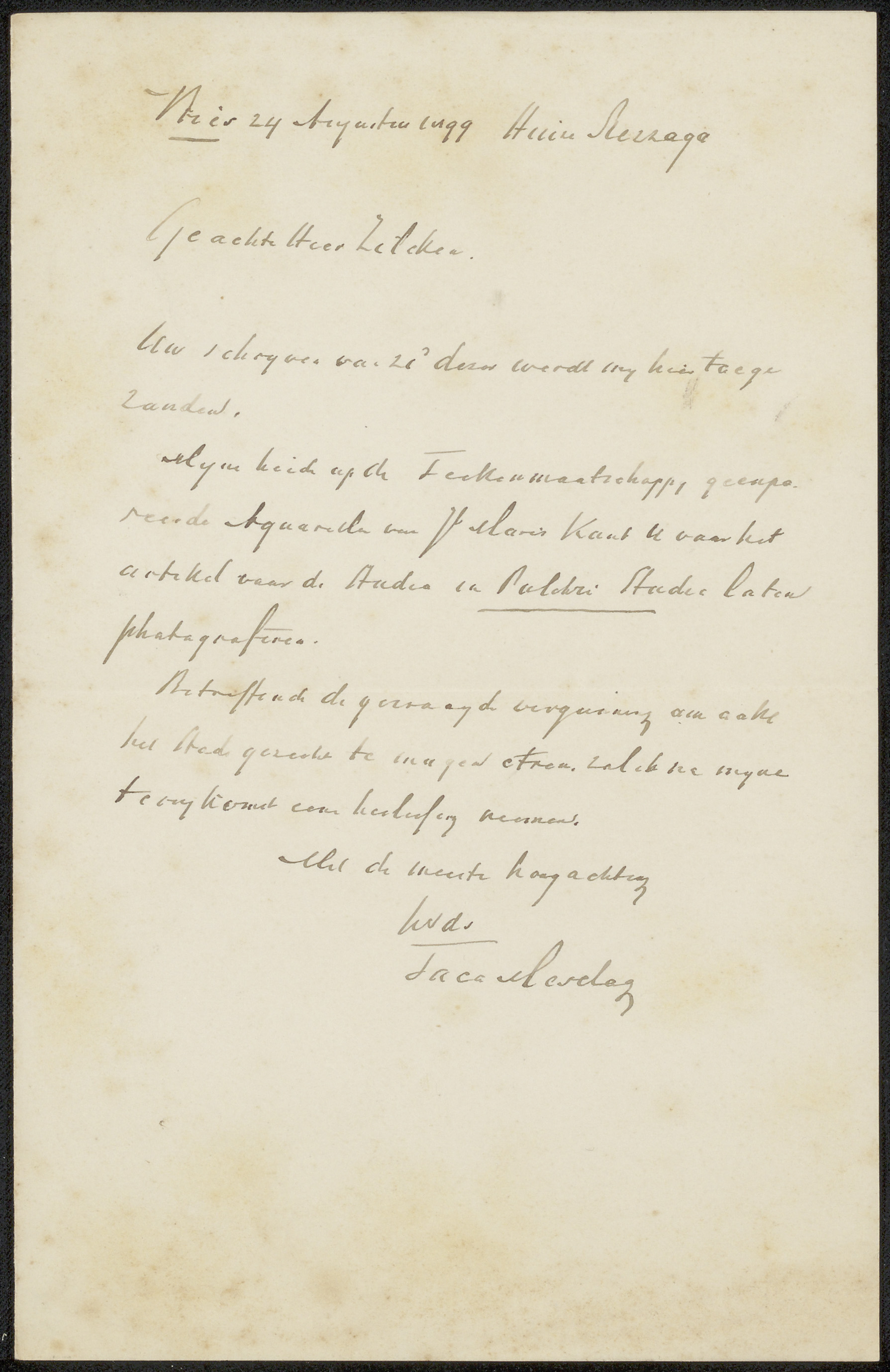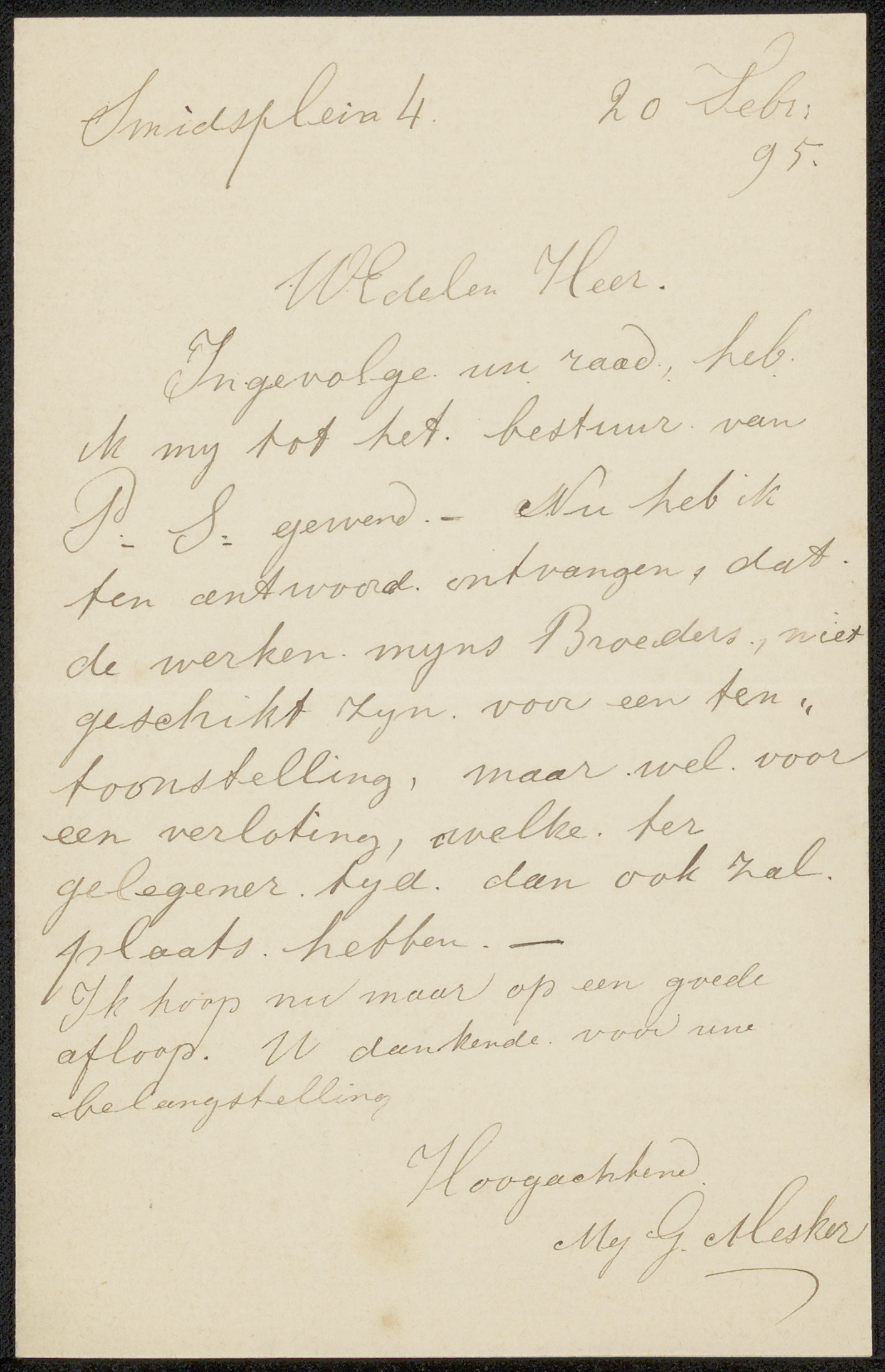 Brief aan de Nederlandsche Etsclub
