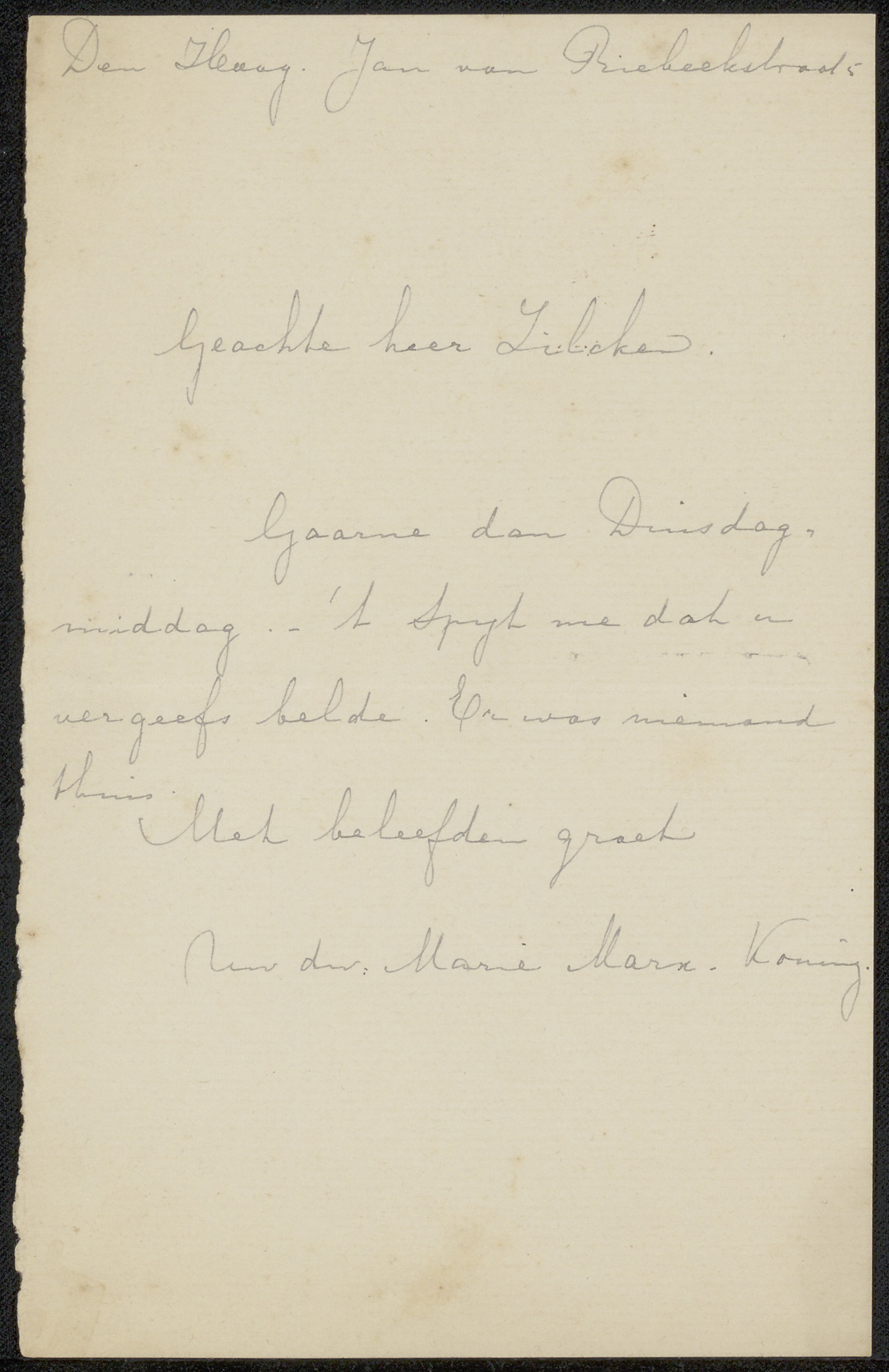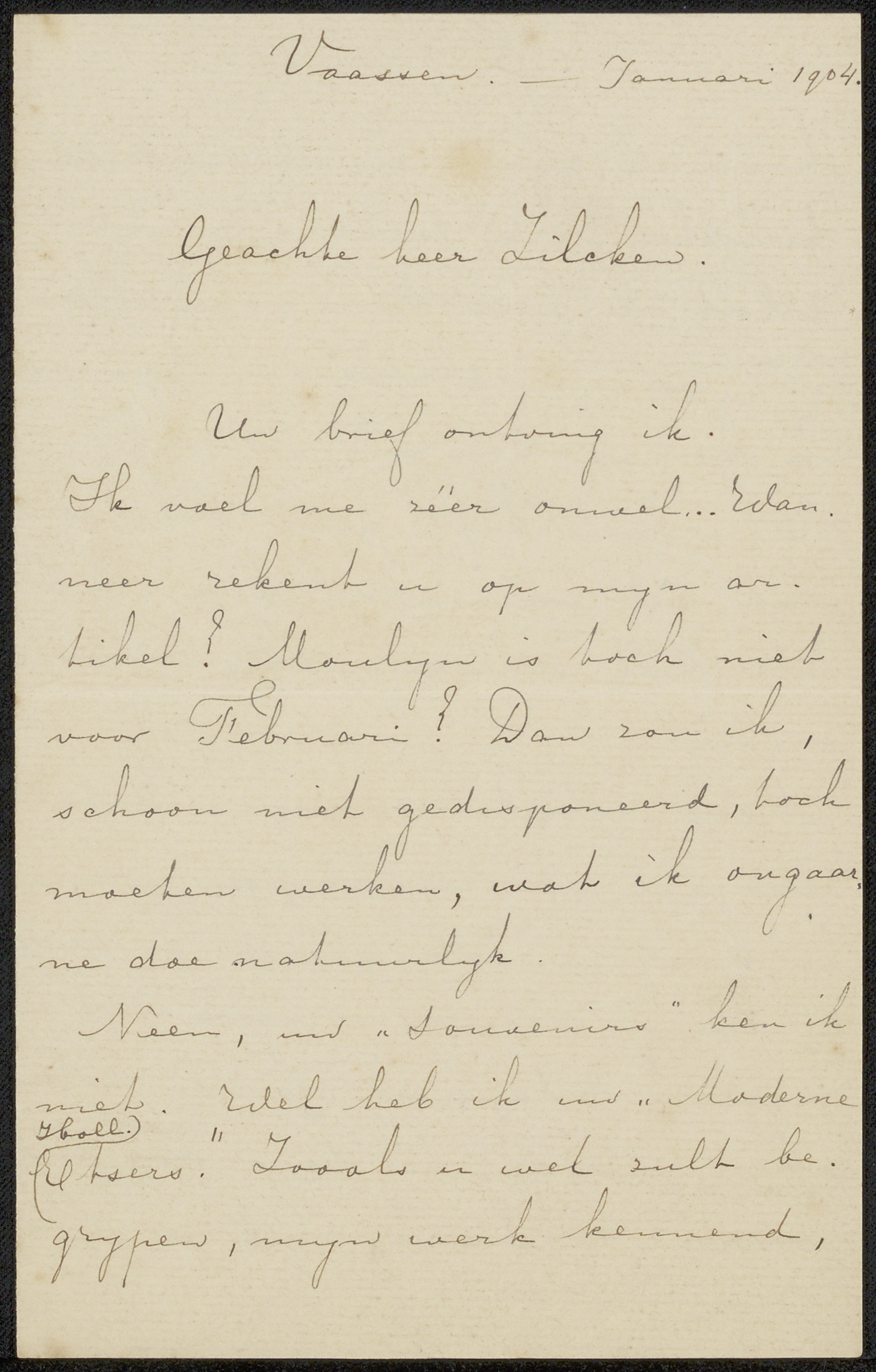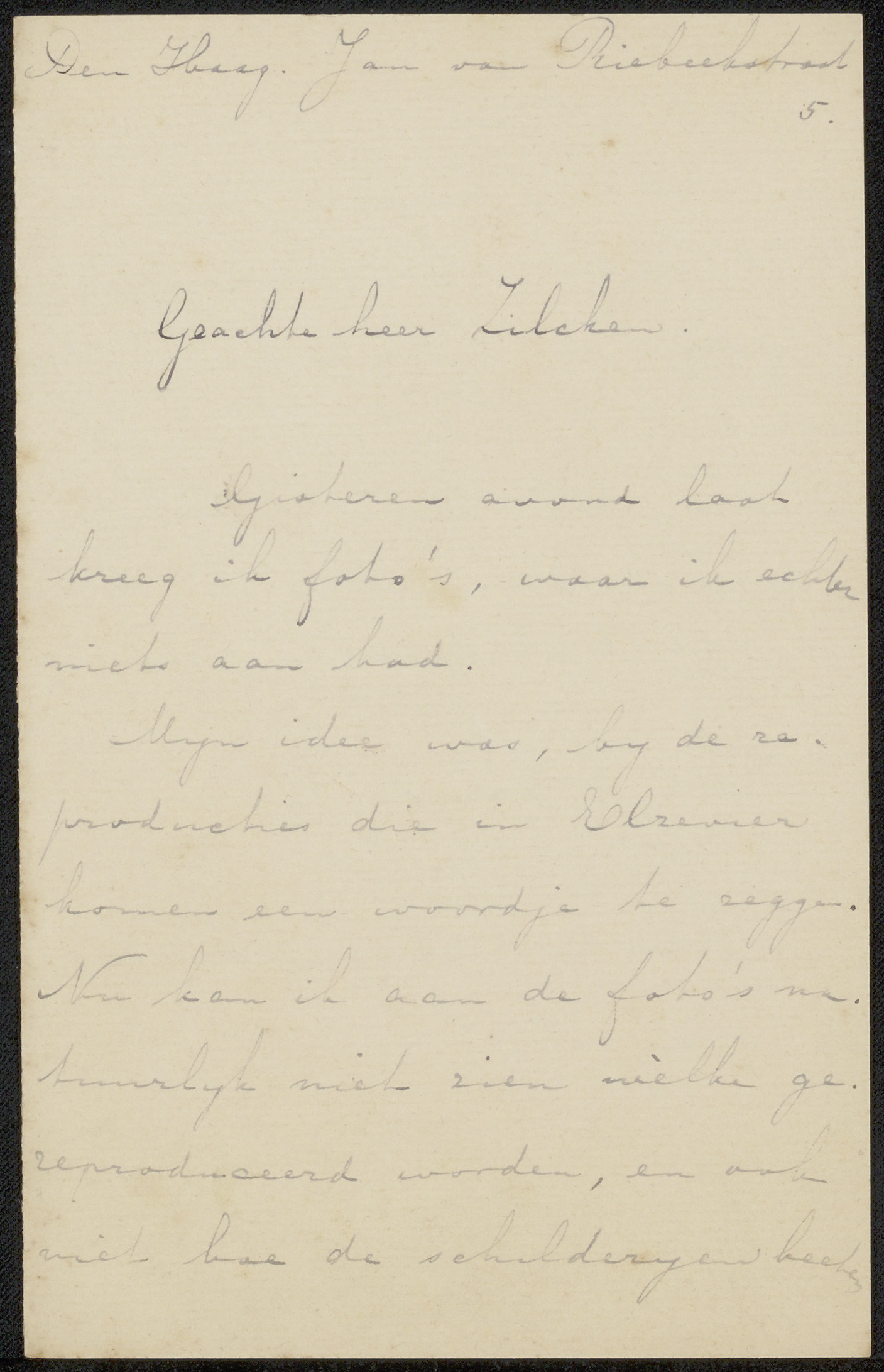 Brief aan Philip Zilcken