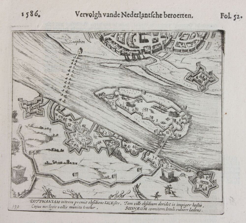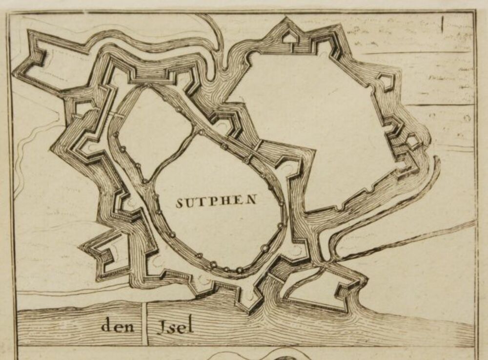 Gravure "Belegering van Zutphen" op papier, 17e eeuw