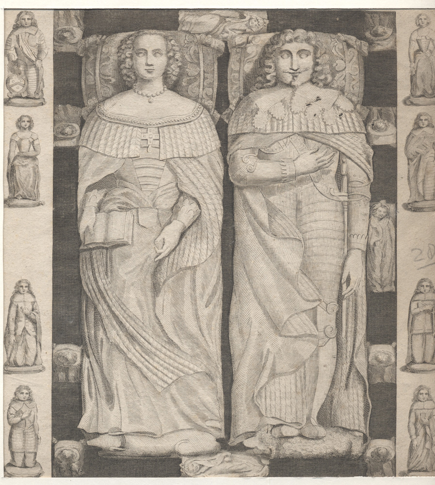 Grafplaat onbekende man en vrouw rondom versierd met...