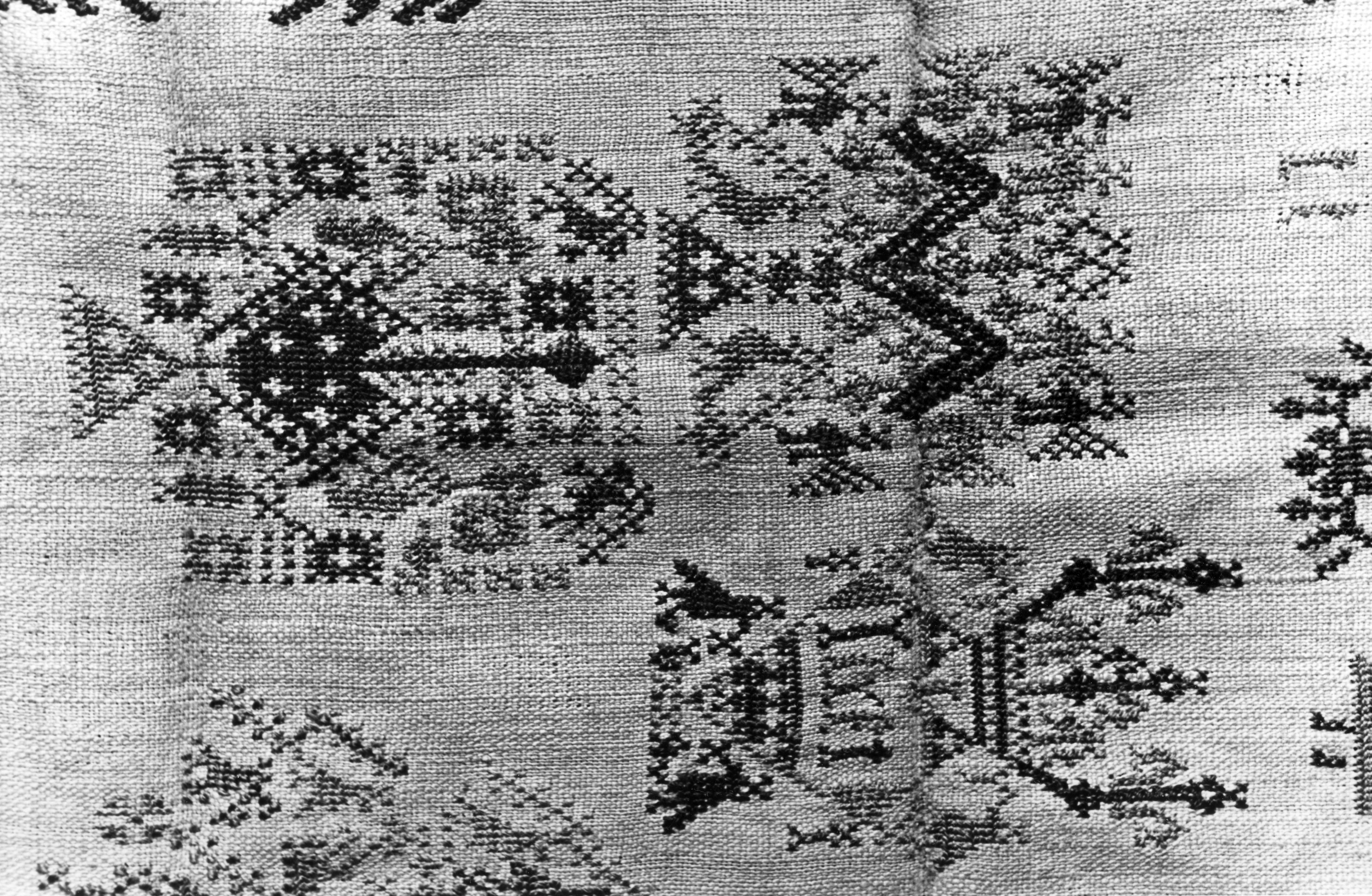 Detail van een merklap uit 1640, Marken, 1943 (zwart...