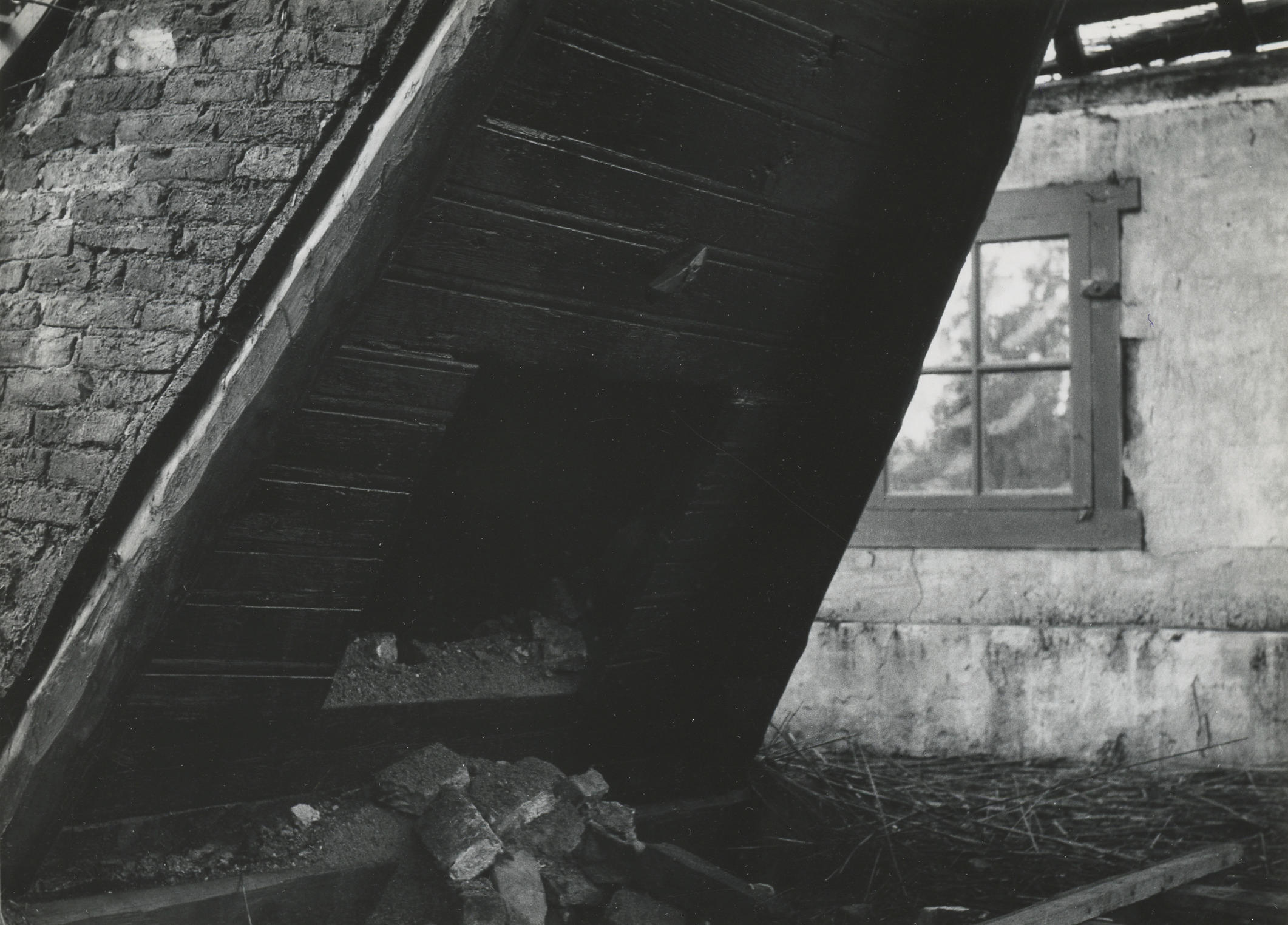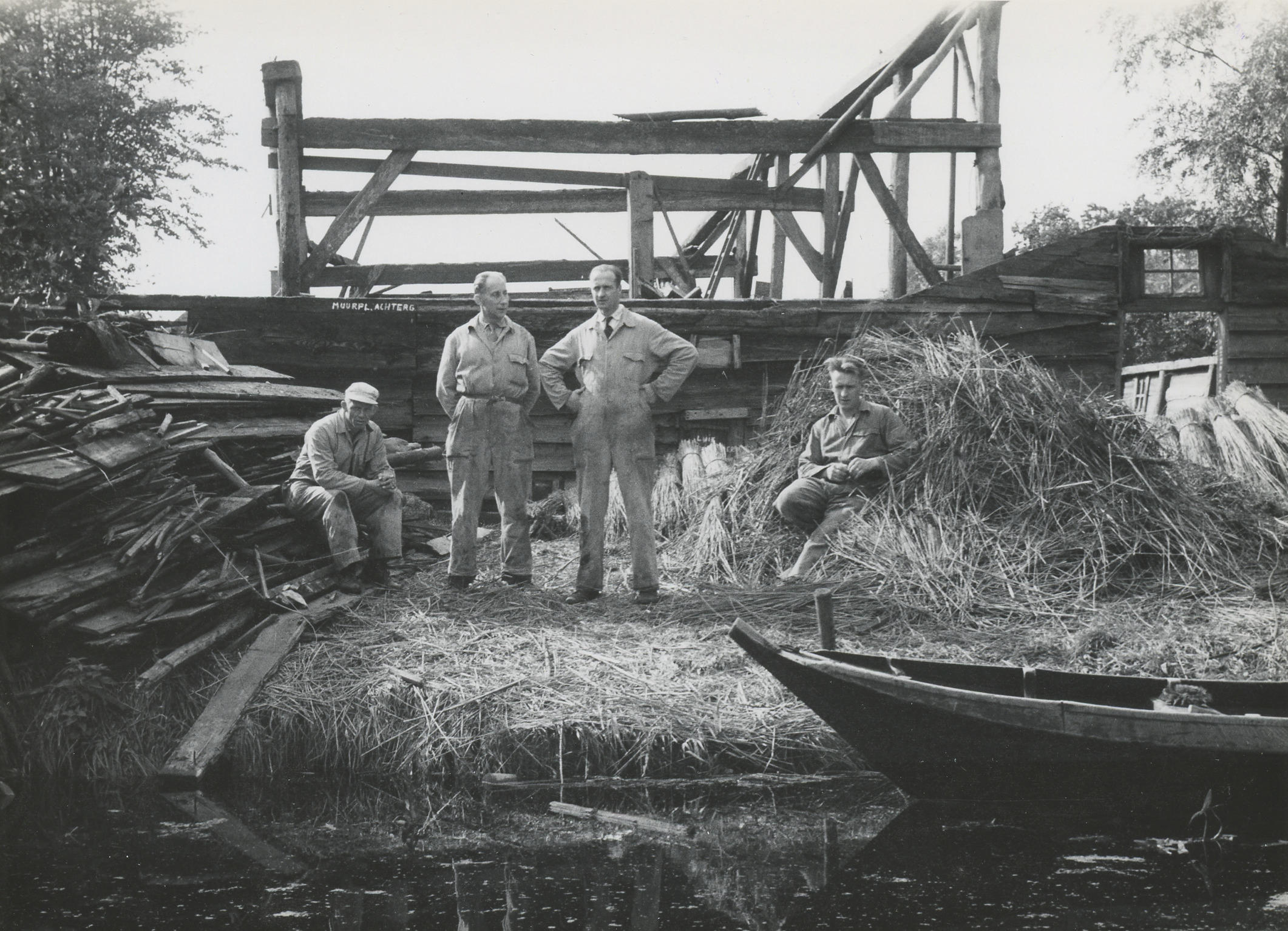 Afbraak van een boerderij, Giethoorn, 1957 (zwart-wi...