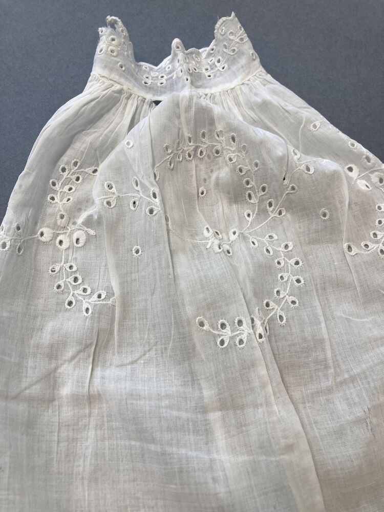 Doopjurk van wit neteldoek met broderie en machinale...
