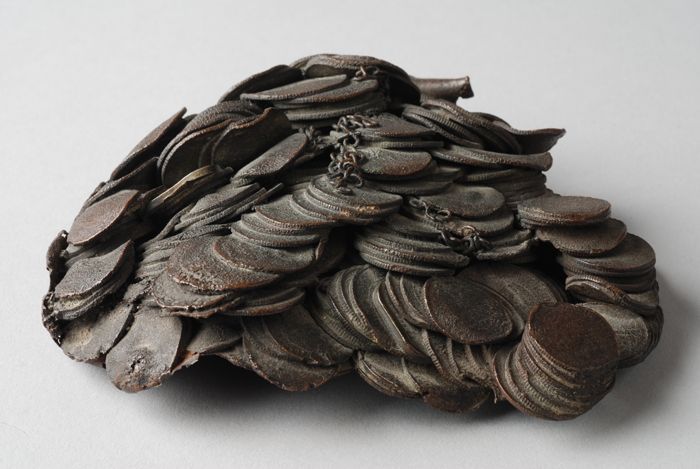 Klont samengesmolten munten, gevonden na bombardemen...