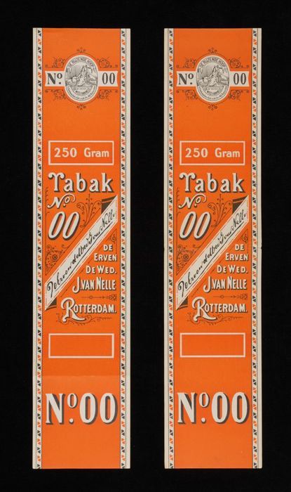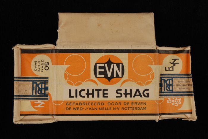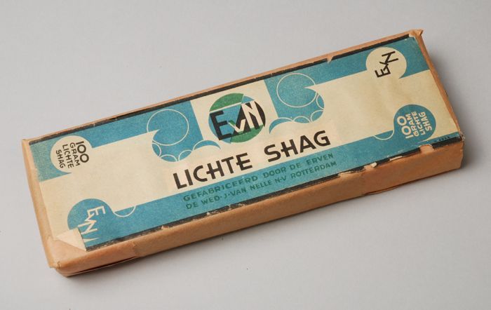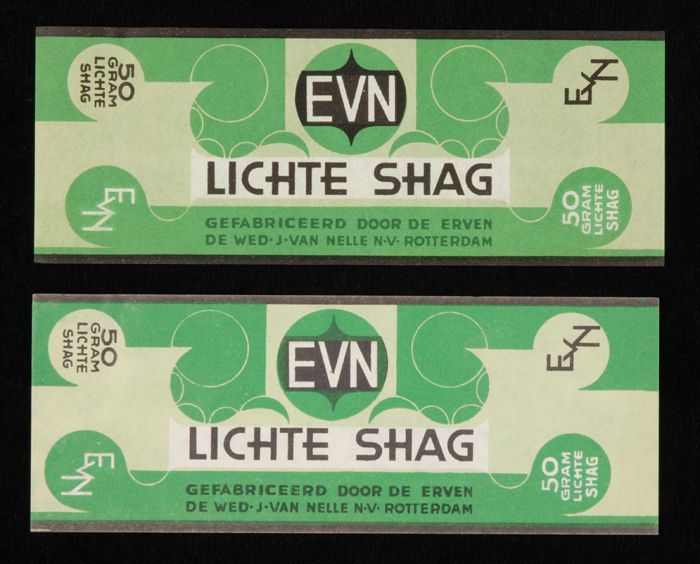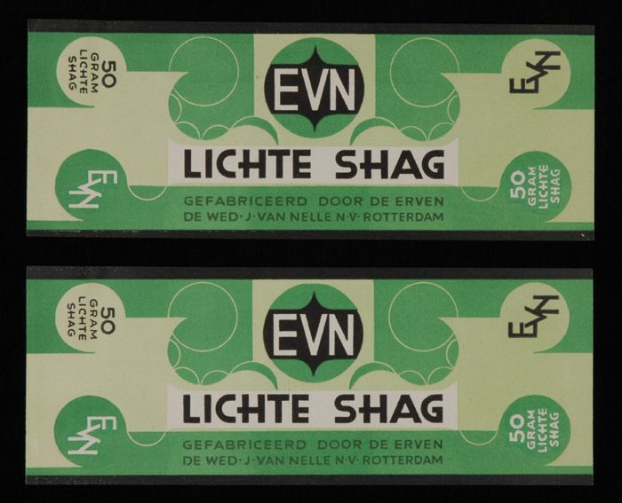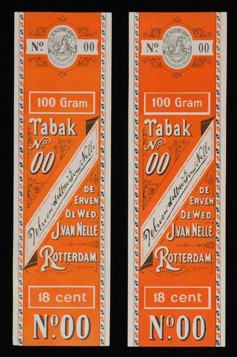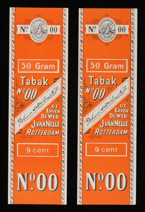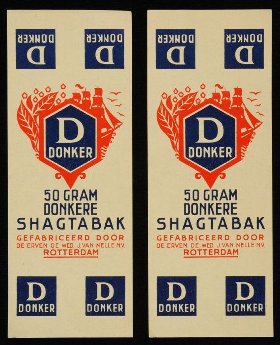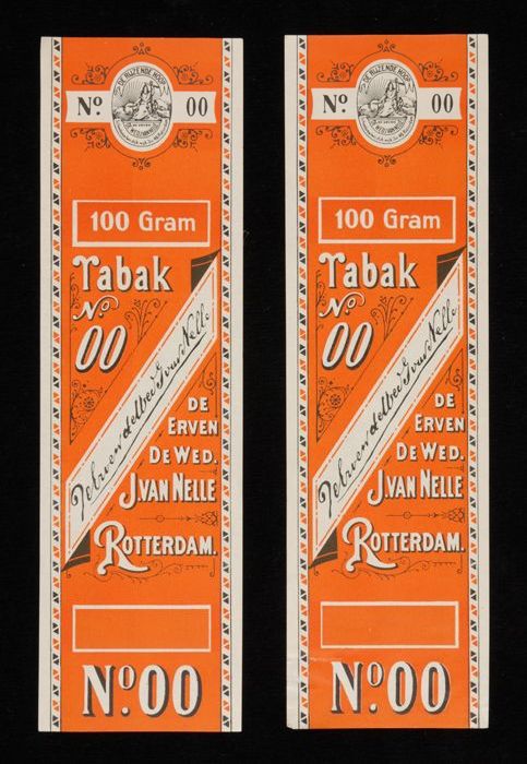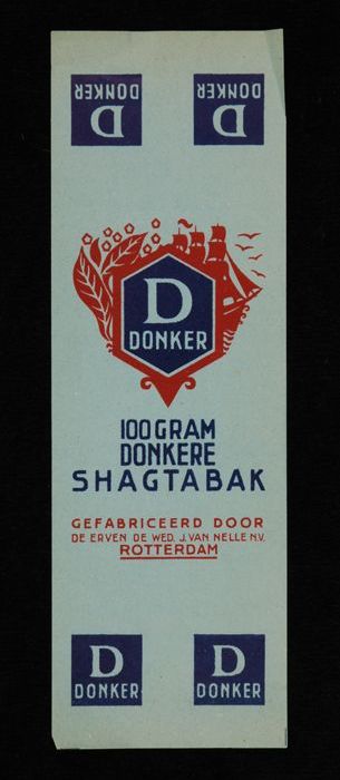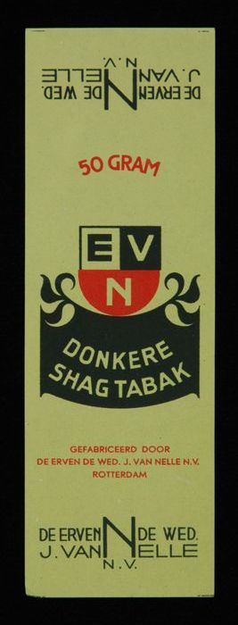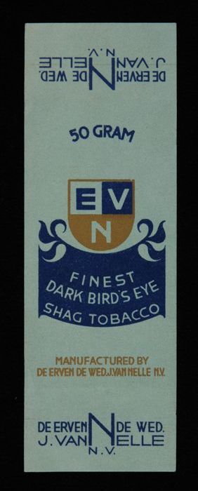 Blauw, papieren label VAN NELLE DONKERE SHAGTABAK, 1...