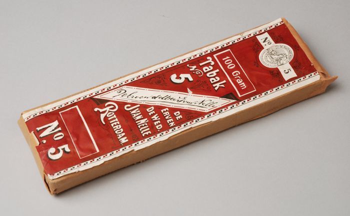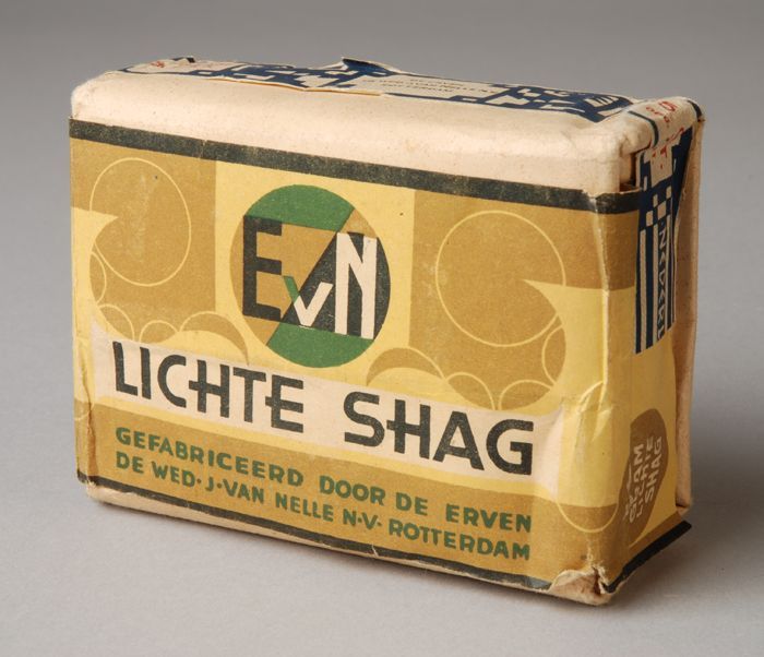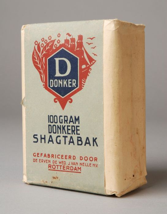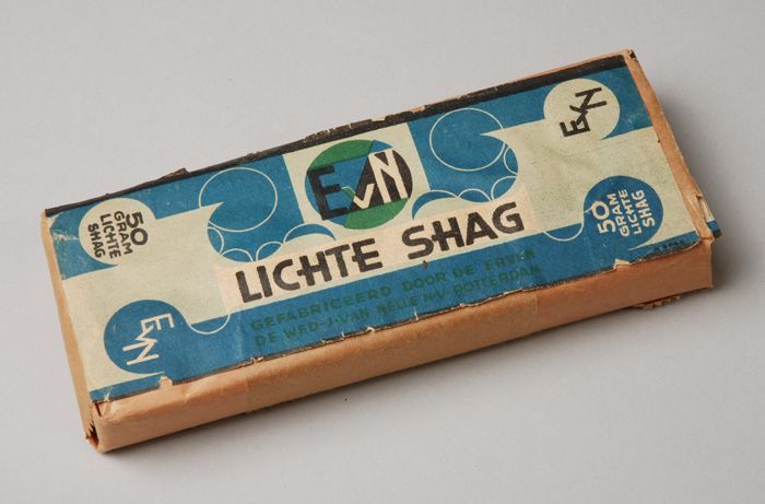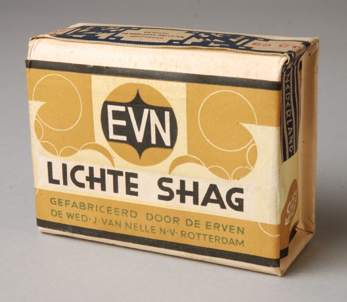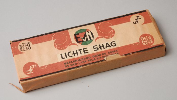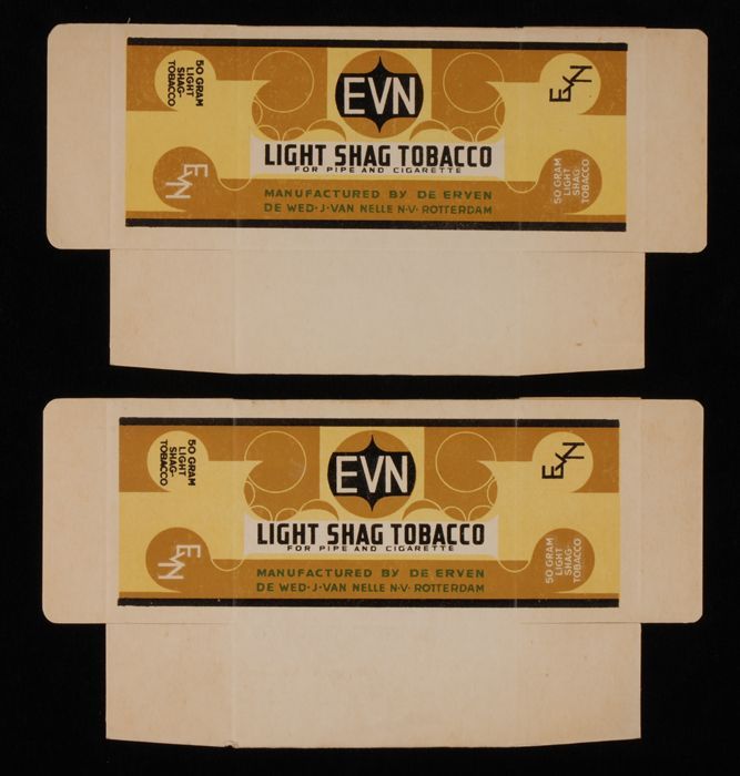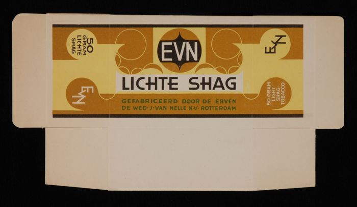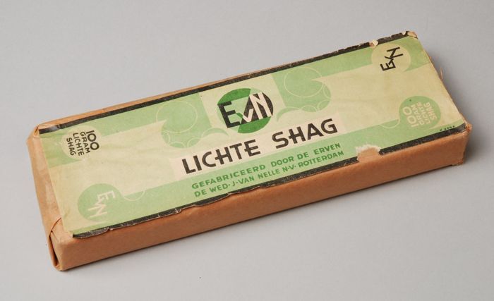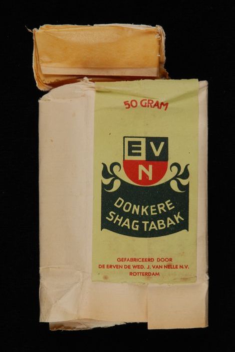 Blauw, papieren label VAN NELLE DONKERE SHAGTABAK, 1...