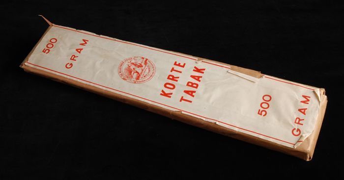 Bruin papieren wikkel waarin labels KORTE TABAK, 500...