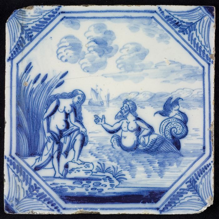 Tegel met mythologisch tafereel met Glaucus en Scyll...