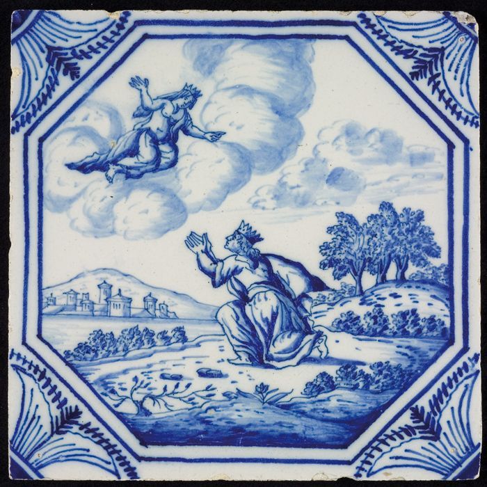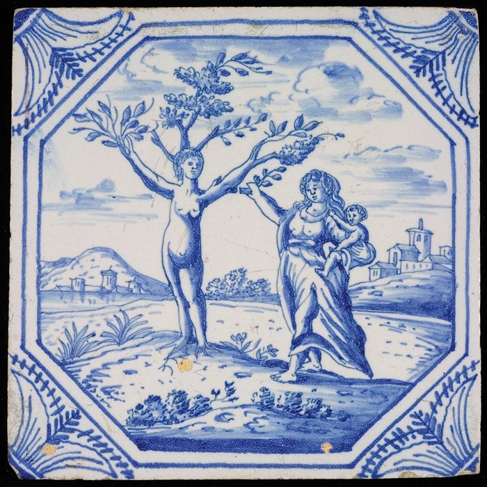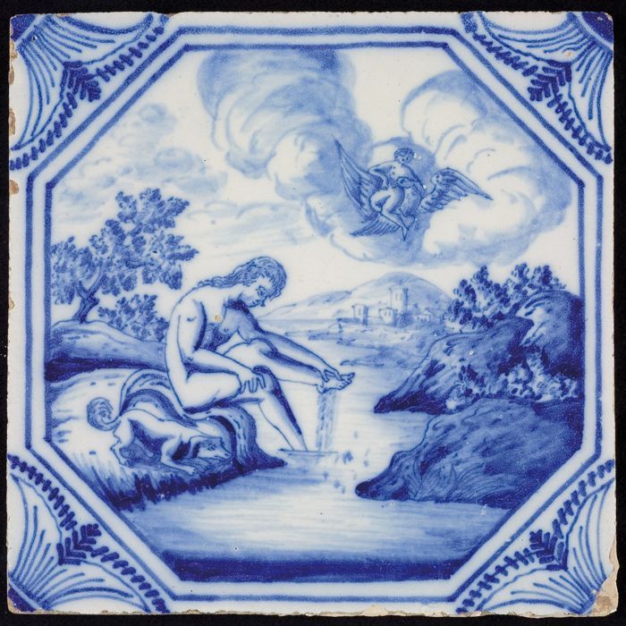 Tegel met mythologisch tafereel met Dryope, in achtk...