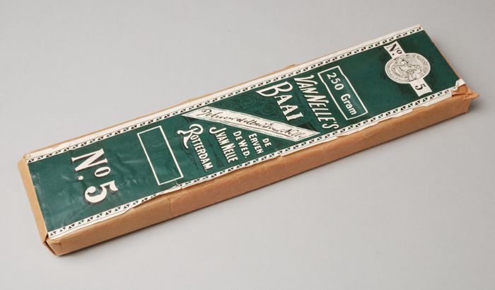 Bruin, papieren wikkel waarin rode labels VAN NELLE ...