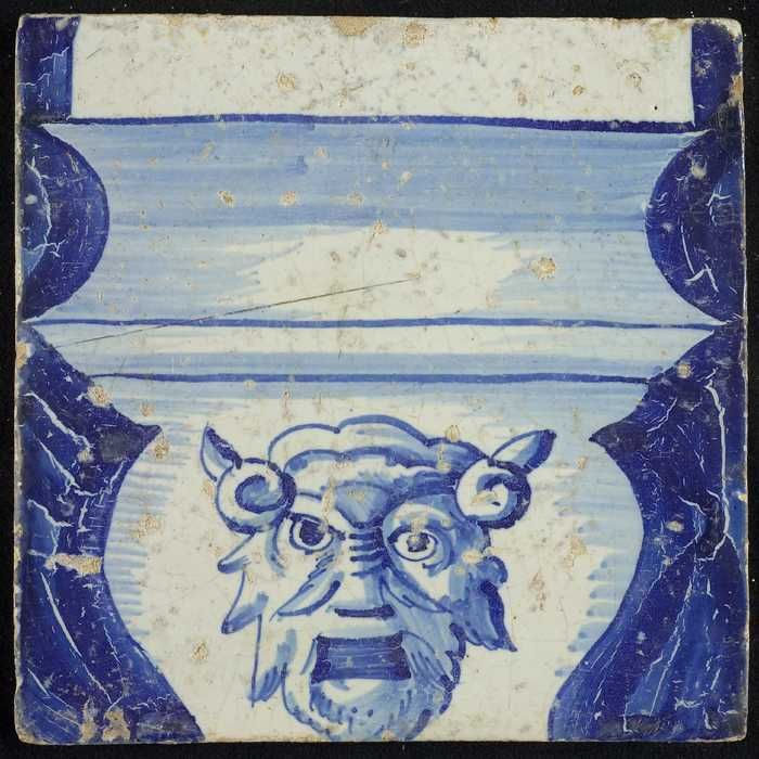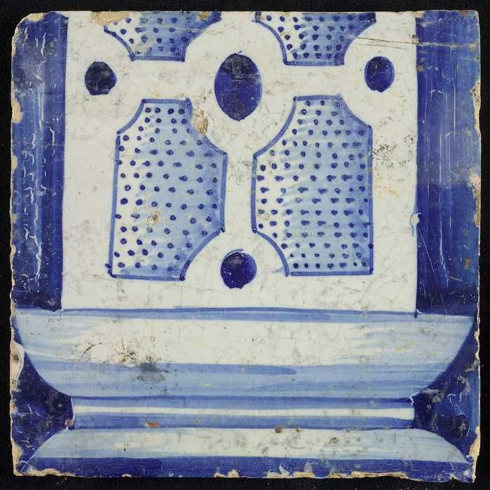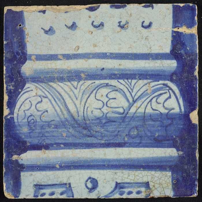 Tegel van schoorsteenpilaster, blauw op wit, onderzi...