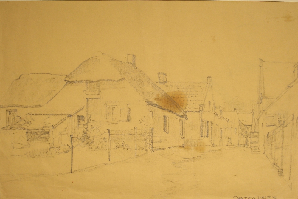 gezicht op de Oosterhoek, Heerewaarden. Tekening W.v...