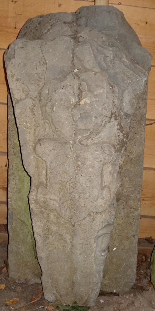 Stoeppaal van Naamse steen met afbeelding van het wa...