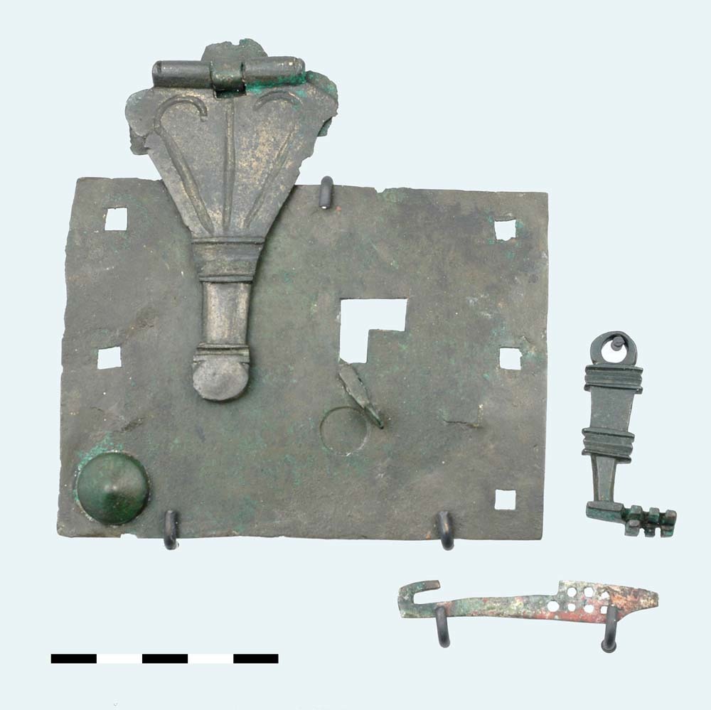 Slotplaat met sleutel en overslag van brons uit de R...