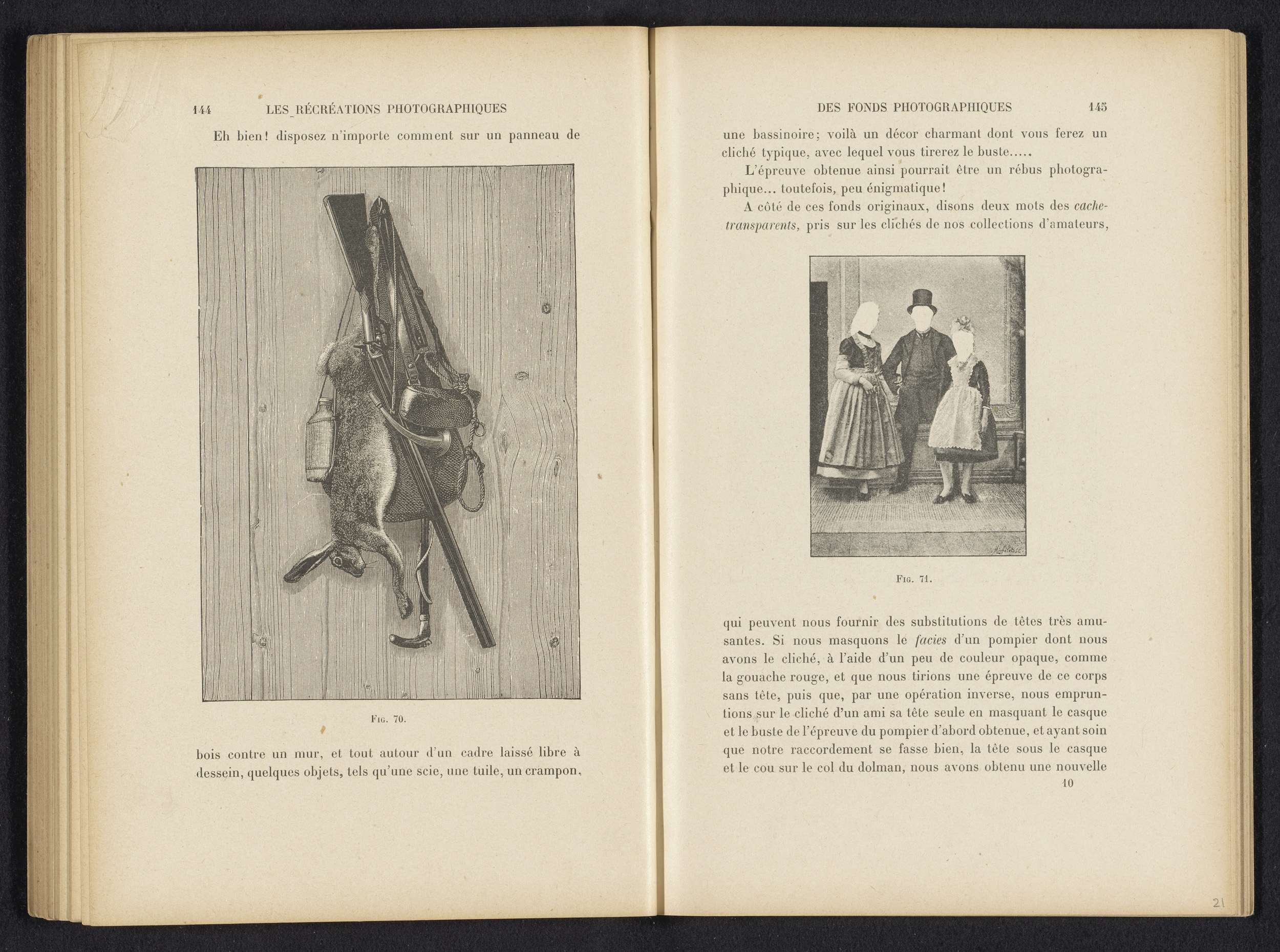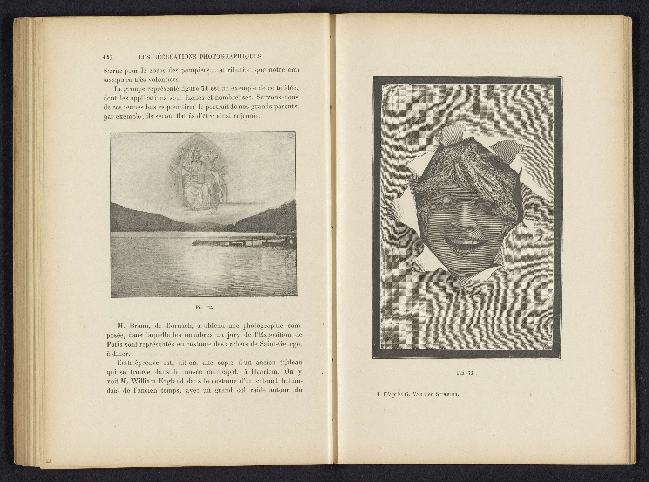 Portret van drie mensen waarvan de hoofden zijn verv...