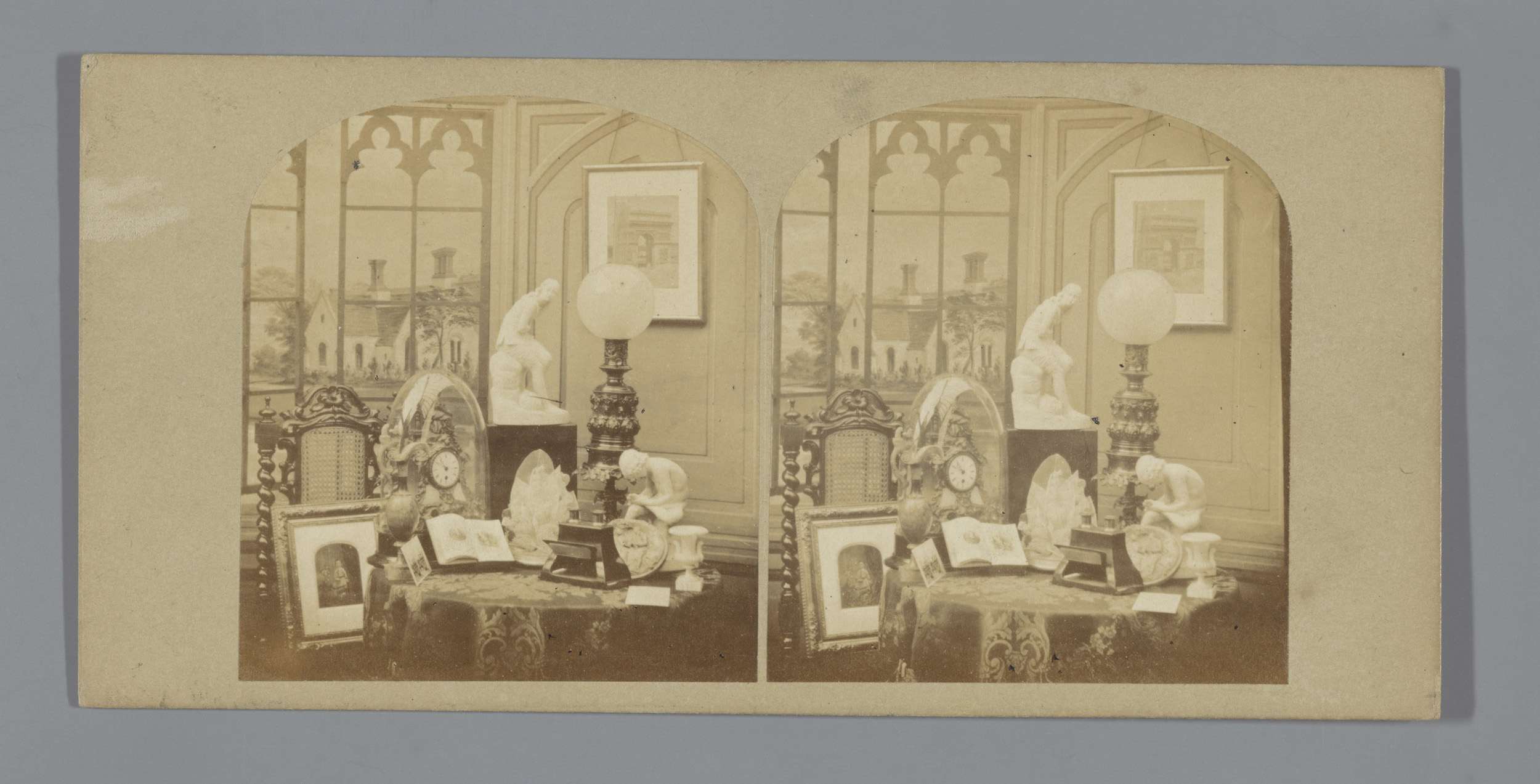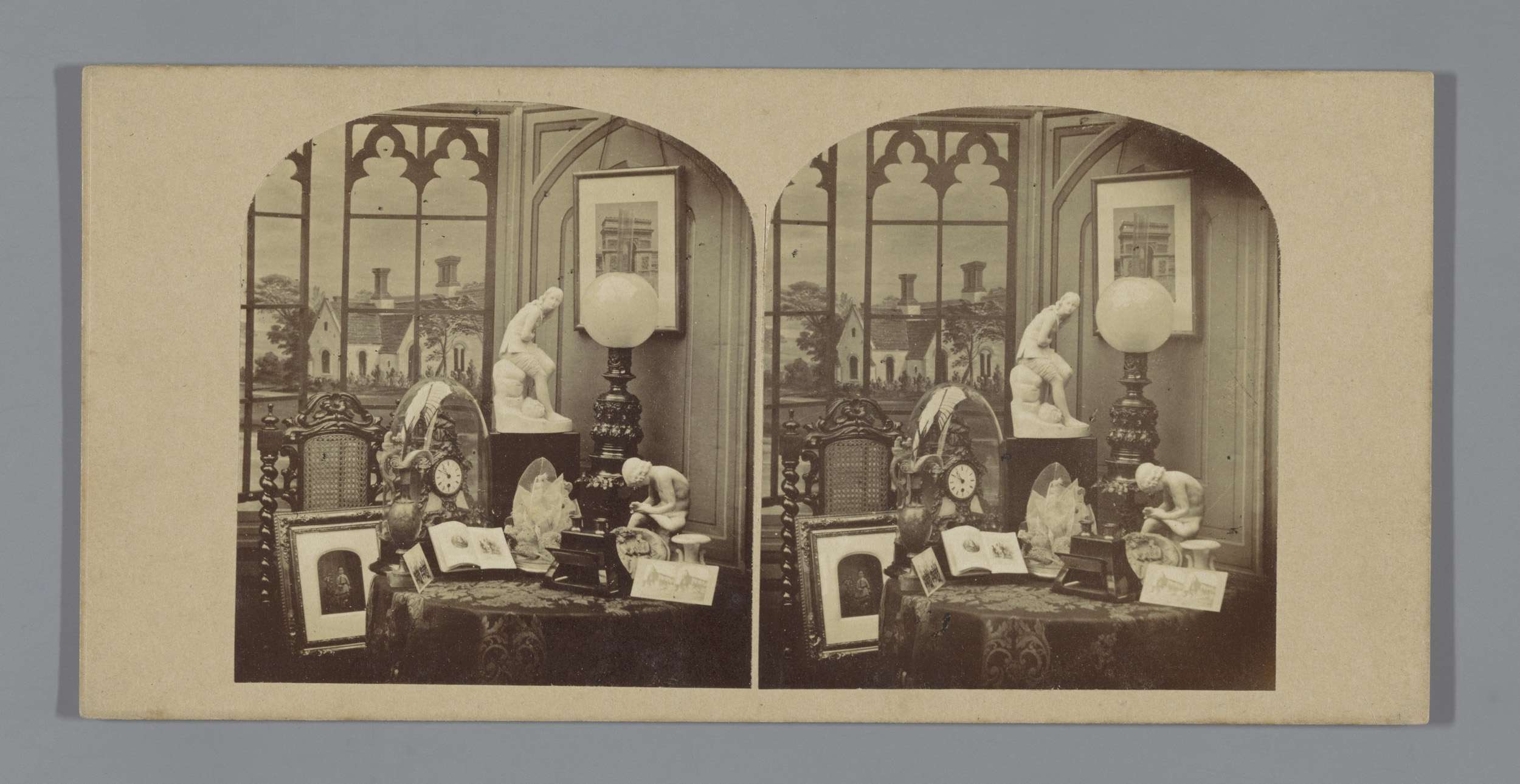 Stilleven met stereoscoop en foto's
