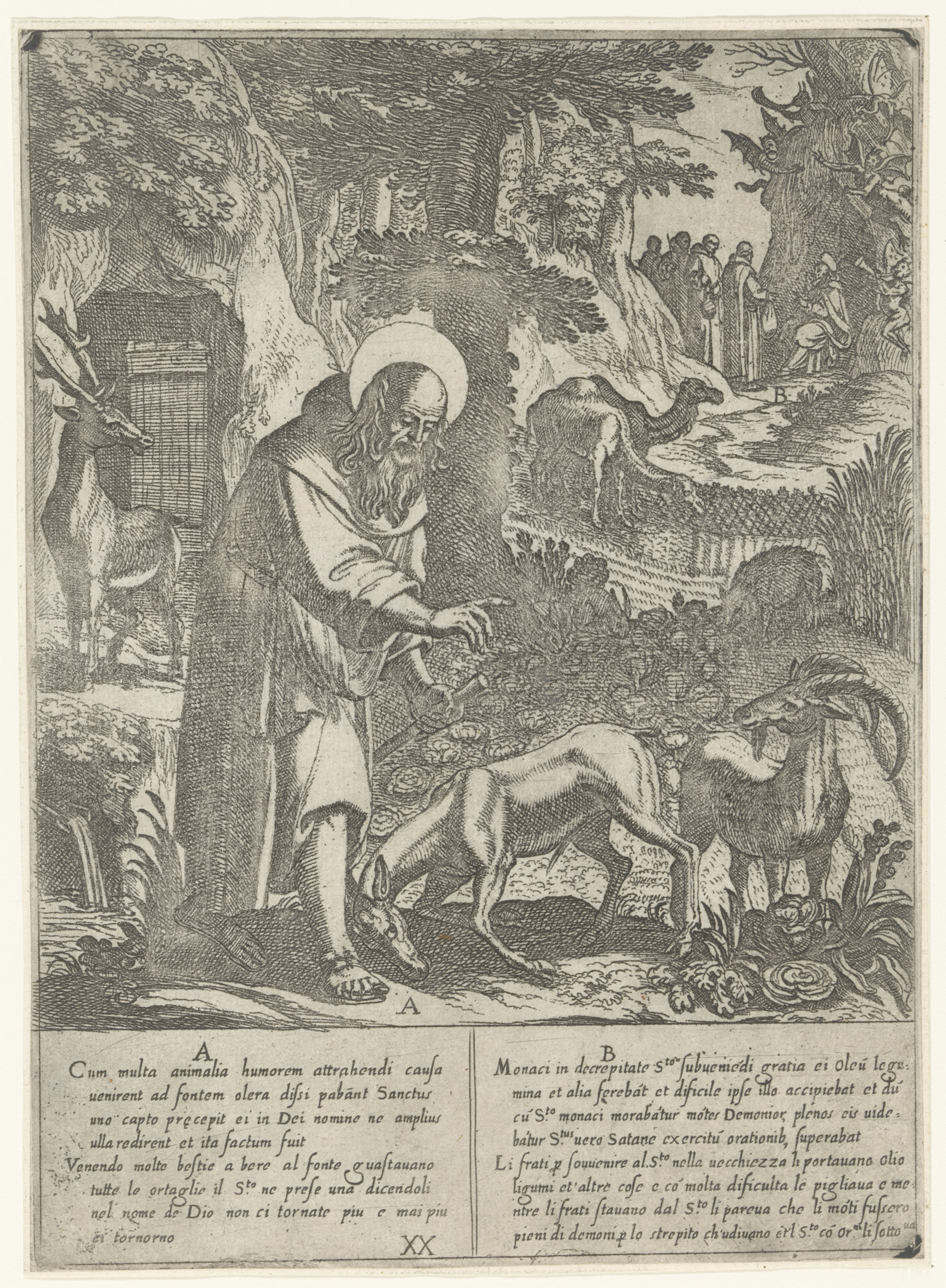H. Antonius ontvangt voedsel en gereedschap om de gr...