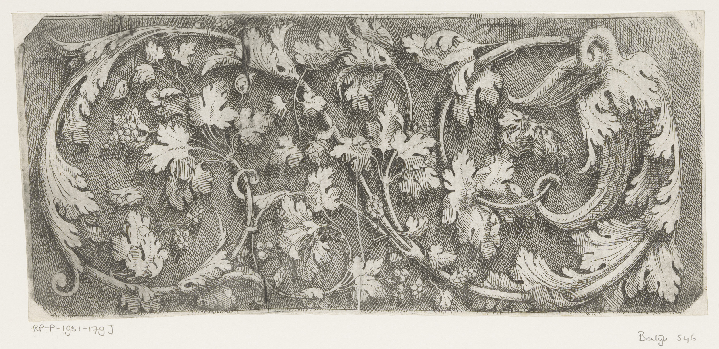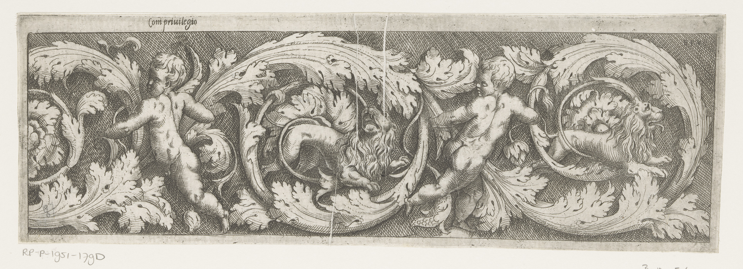 Fries met arabesken, twee putti en twee leeuwen